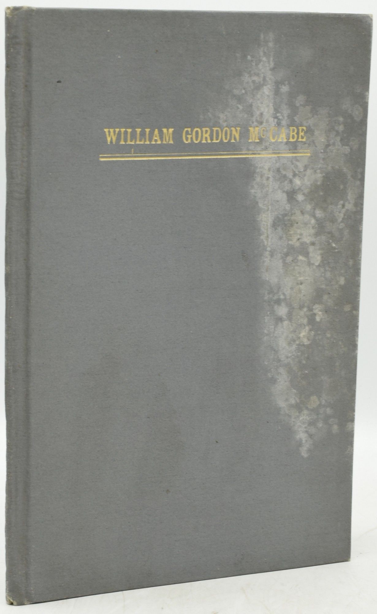 Richmond: Old Dominion Press, Printers, 1920. A much shorter memoir, preceding Armistead Gordon's Memories and Memorials of William Gordon McCabe which was published five years later, 1925.~~This copy is signed "From William Gordon McCabe" and dated in his hand Sept. 23, 1921. ~~In the publisher's gray cloth, with titling in gilt to the upper board. The upper board has an unsightly stain, and the front endpaper a closed tear of about 1". There is some light internal staining as well near the gutter.~~Rather less common than the later, and greatly enlarged, Memoir.