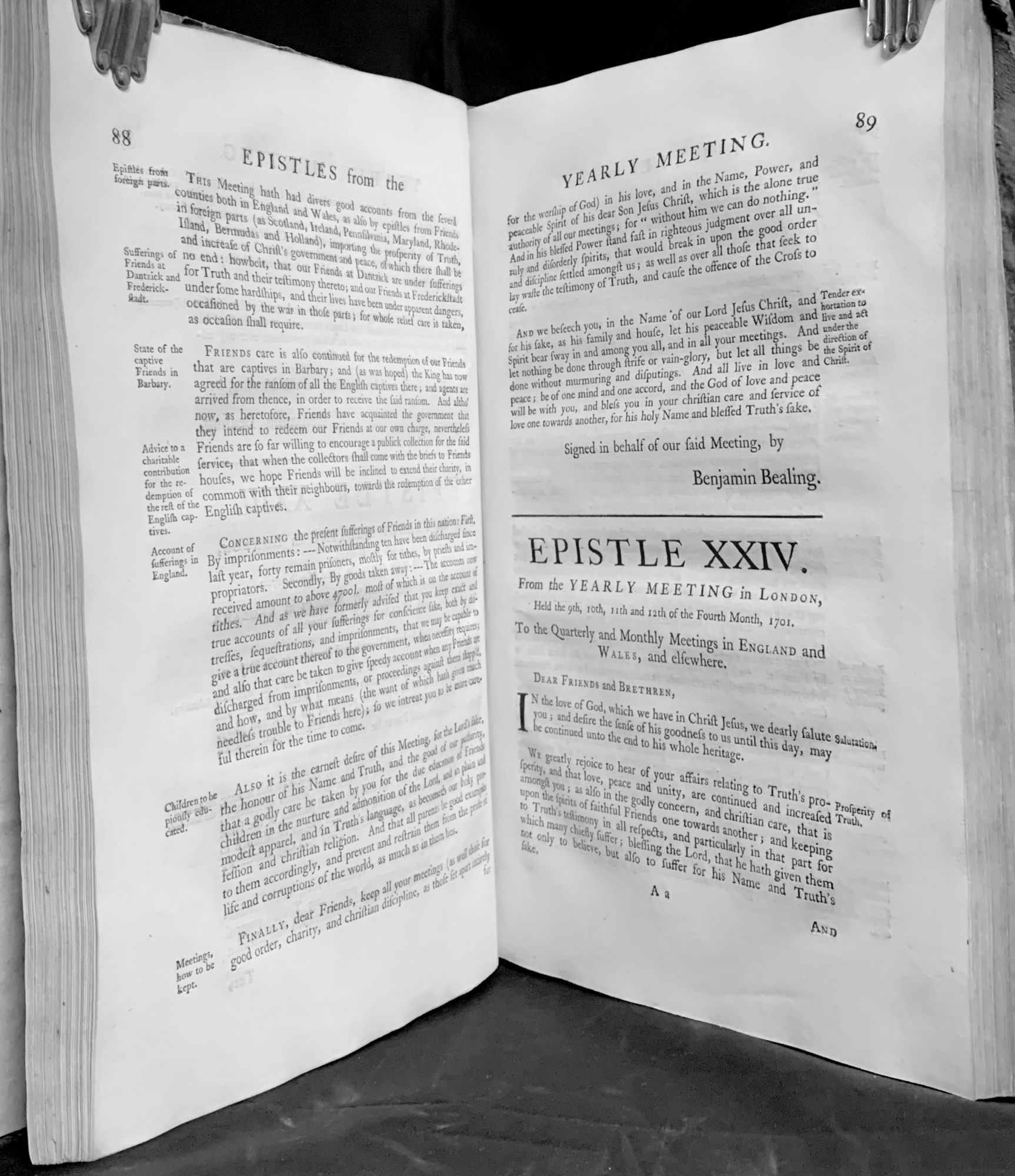 Epistles From The Yearly Meeting Of the People called Quakers, Held in London, To The Quarterly and Monthly Meetings in Great Britain, Ireland, and Elsewhere; From the Year 1675, to 1759, inclusive.; With an Index to the Principal Subjects of Advice
