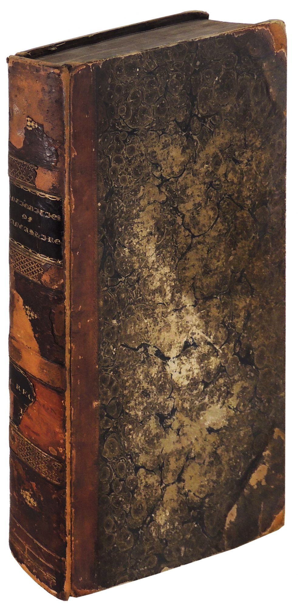 Bound in marbled paper boards with three quarter leather. The boards are scraped and the corners are very rubbed. The leather is scratched and rubbed. Two of the spine labels have pieces missing. Except for occasional spotting, the interior pages are quite clean and bright. There are two fold-outs. The one at the front of the book is fine. The rear fold-out has some tears from unfolding but still of use. With bookplate of Stephen Leslie Norris and ownership signature of Jane Noble Pilkington dated Dec. 1828. Very good condition. Measures 8 x 13 inches. 302 pages plus appendix with cviii pages. ENGHIST/122820.