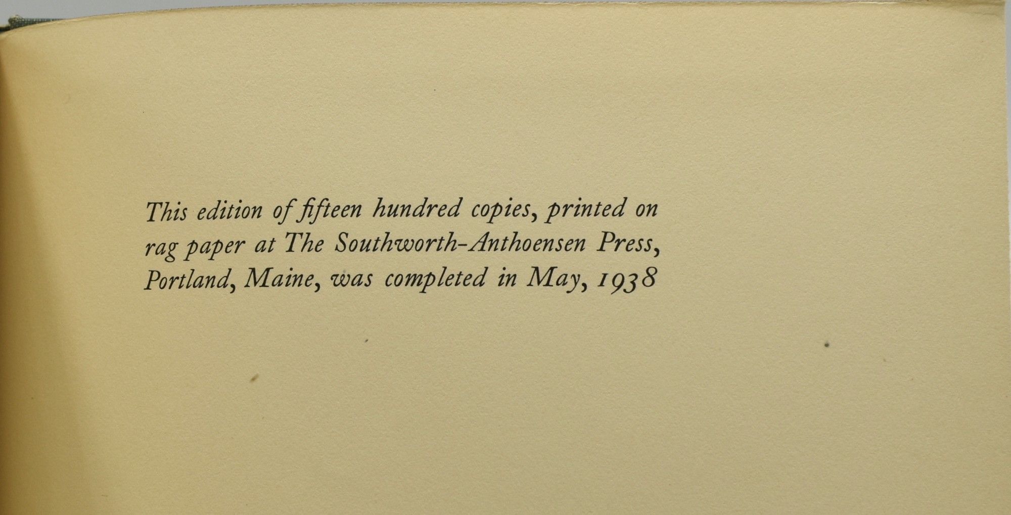 Portland, Maine: The Southworth-Anthoensen Press, 1938. Second Enlarged Edition. Hard Cover. Fine binding. A Fine copy of the Second Enlarged Edition, limited to 1500 copies, and housed in the publisher's slipcase. Pages unopened.~~There are no ownership or other marks of any kind in this book. Fine binding.