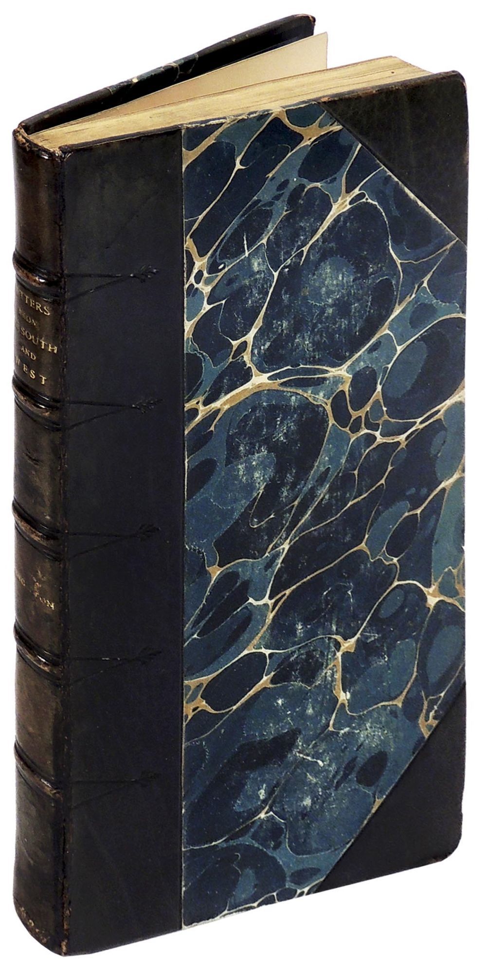 Boston: Richardson and Lord, 1824. Hardcover. Very Good. Hardcover. Scarce travel classic written by Henry Knight [1789-1835] using the pseudonym of Arthur Singleton. Includes Knight's letters from Philadelphia, Washington City, Virginia, Kentucky, New Orleans, and the Gulf of Mexico with Knight's detailed and interesting observations of each city or region. Attractively bound in three quarter navy blue leather over marbled paper covered boards with gilt title and raised bands to spine. Wear and rubbing to hinges, bands, and edges of boards. Rubbing to marbled paper covers. Exlibrary with book stamp of Headlee's Book Exchange to title page and verso. Bookplate to front pastedown featuring an unidentified family crest. Occasional spots of foxing to interior and handwritten note in pencil regarding pseudonym on title page, but clean and bright overall. Marbled endpapers and top edge gilt. 159 pages. AMER/010720.