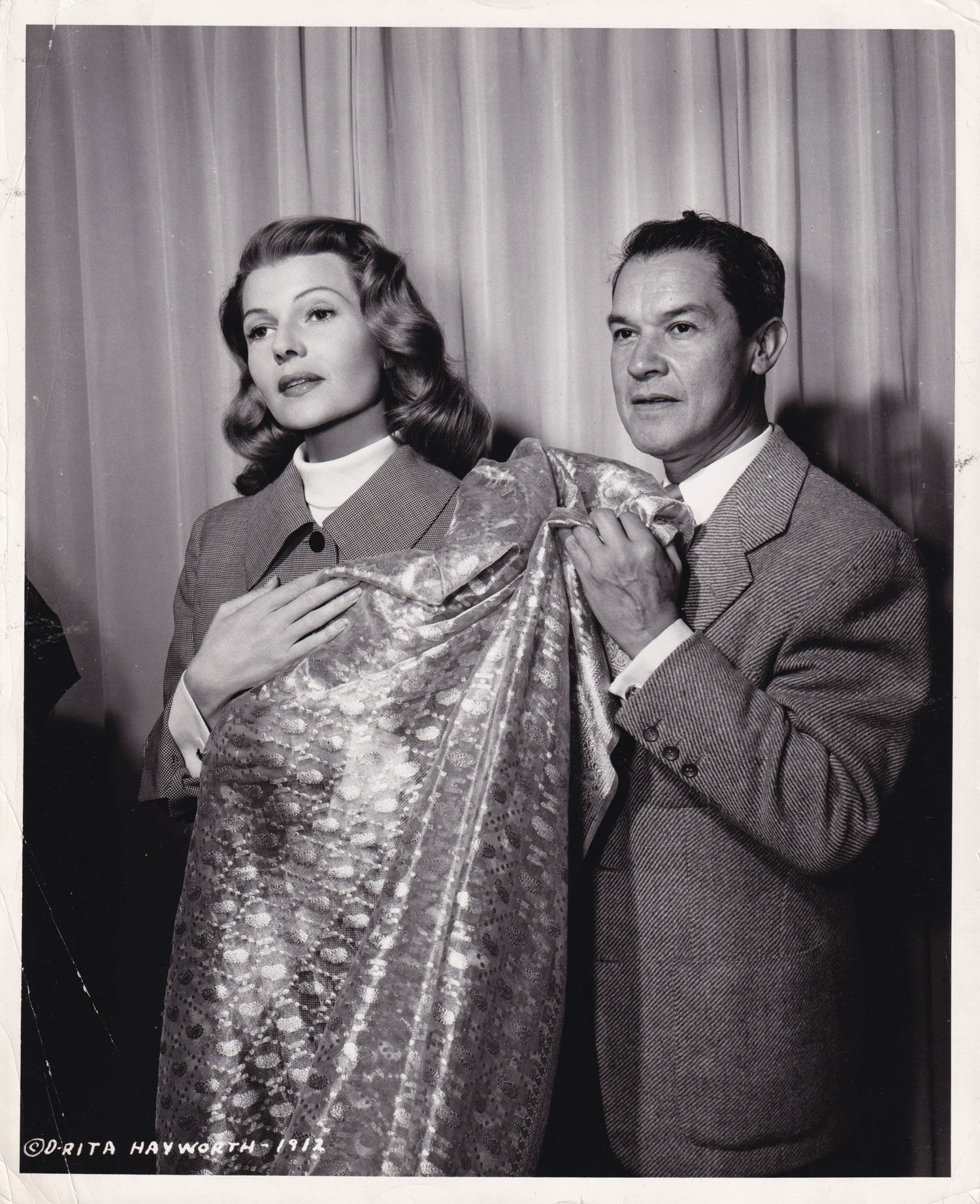 Original photograph of Rita Hayworth and Jean Louis, circa 1954
