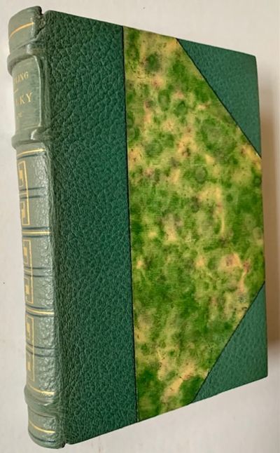 Paris: Librairie Delagrave, 1938. 3/4 leather. Near Fine. E. Carlegle. #90 of 100 copies (within the larger limitation of 1,210 copies) of this handsome 1938 French edition of Kipling's "Stalky & Co."). Bound in 3/4 pebbled green morocco over marbled boards. 3 raised bands, bright gilt-tilting and lovely Art Deco gilt-tooling along the spine. Matching marbled endsheets and pastedowns, the original wrappers bound-in. As part of the limitation of 100 copies, includes the 12 extra plates-in-color by E. Carlegle and "une suite speciale des gravures en bistro". Clean, very attractive and Near Fine, translated from its original Englsh by Paul Bettelheim and Rodolphe Thomas.
