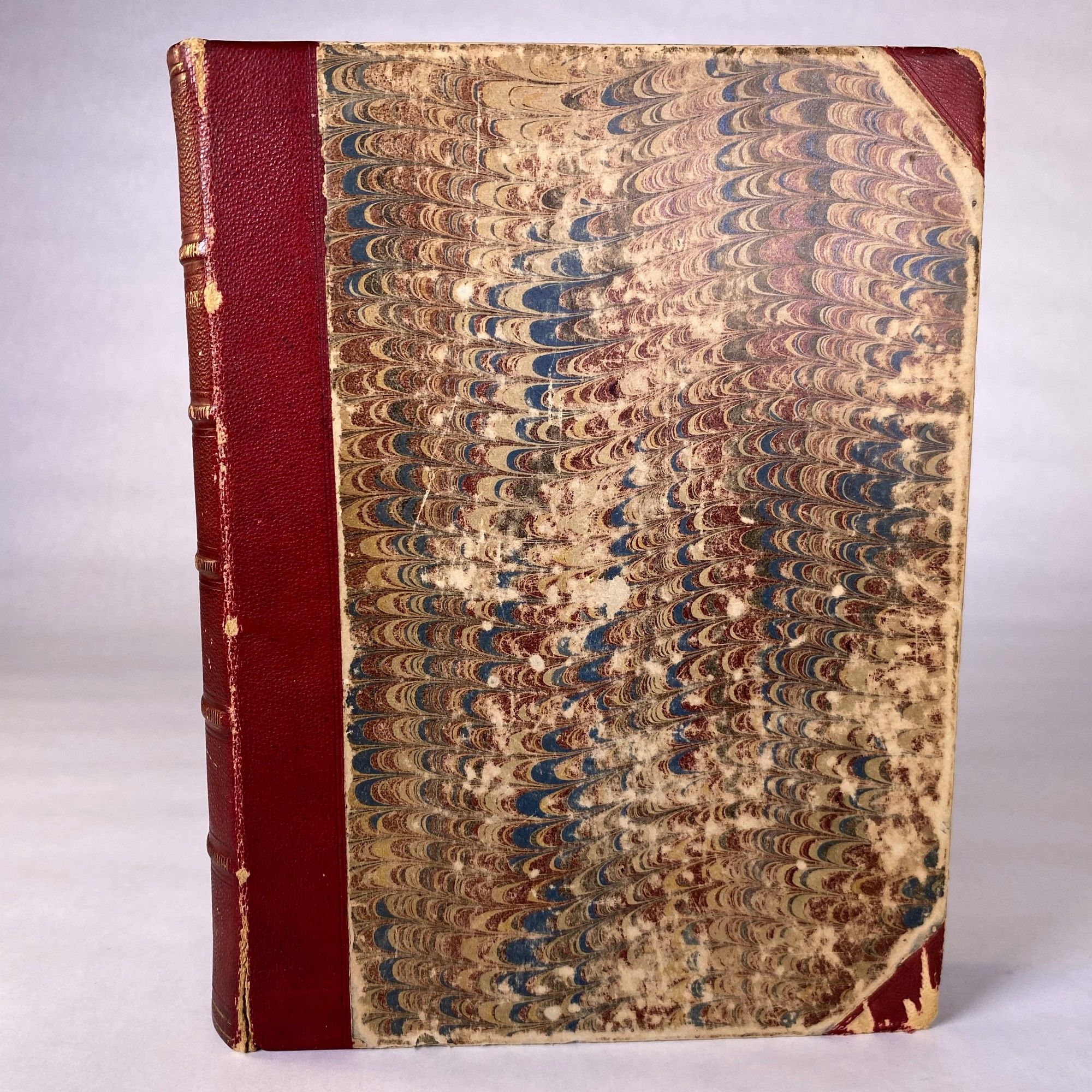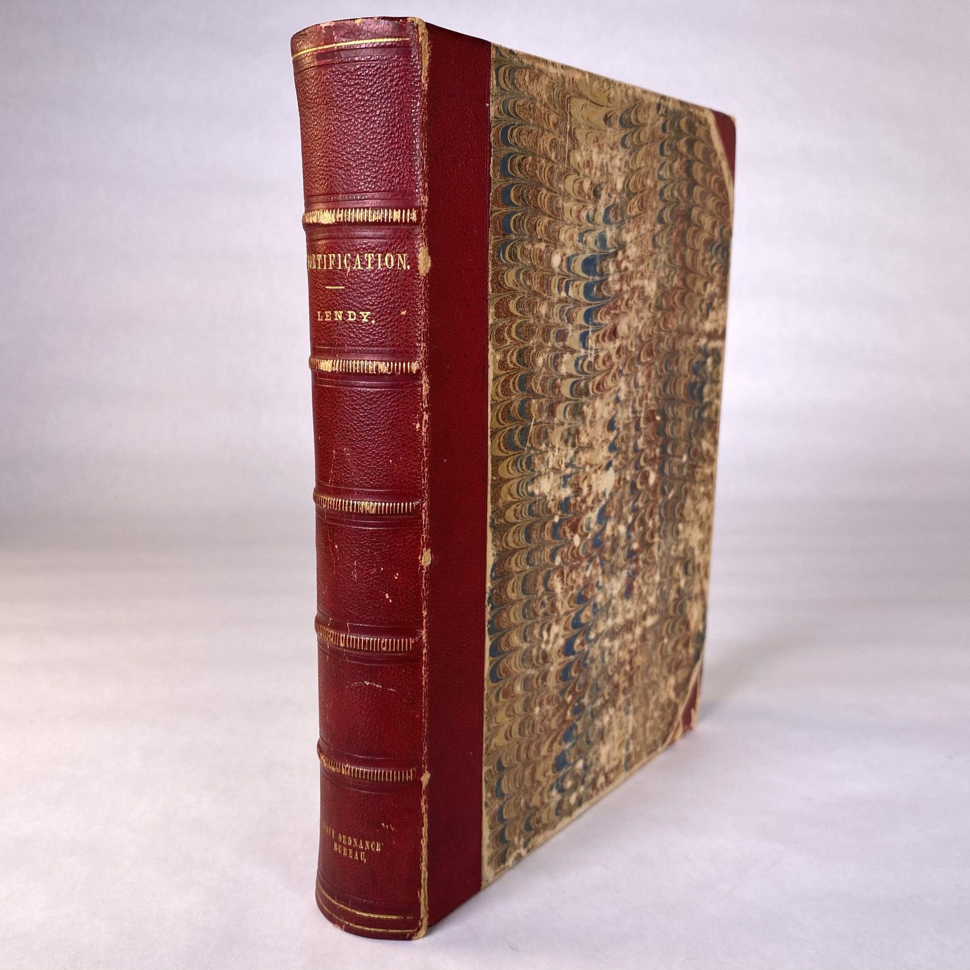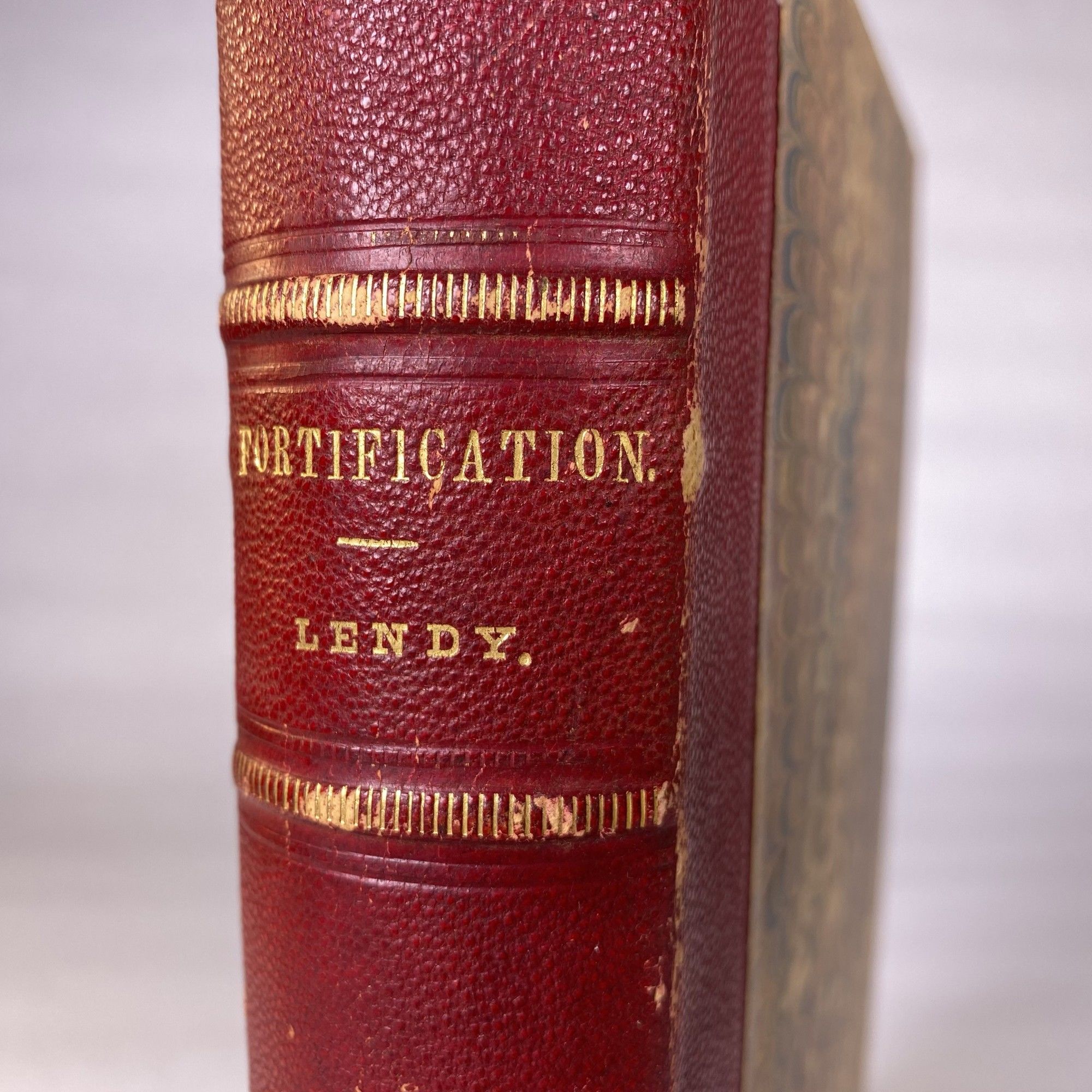 London: W. Mitchell, 1862. First Edition. Half Leather. Very Good binding. Treatise by one of the most respected of the British Army crammer, having set up a military college at Sundbury House, with a specialty in the study of fortifications. This copy in half red morocco over marbled boards; the front joint is starting at the bottom, though holding well; both the leather and the marbled paper are rubbed; there is a small bookplate and an old blindstamp for the Bureau of Ordnance of the United States Navy; xiv, 538 pages;[2] pages of ad for Mitchell's Military Books; illustrations. Very Good binding.