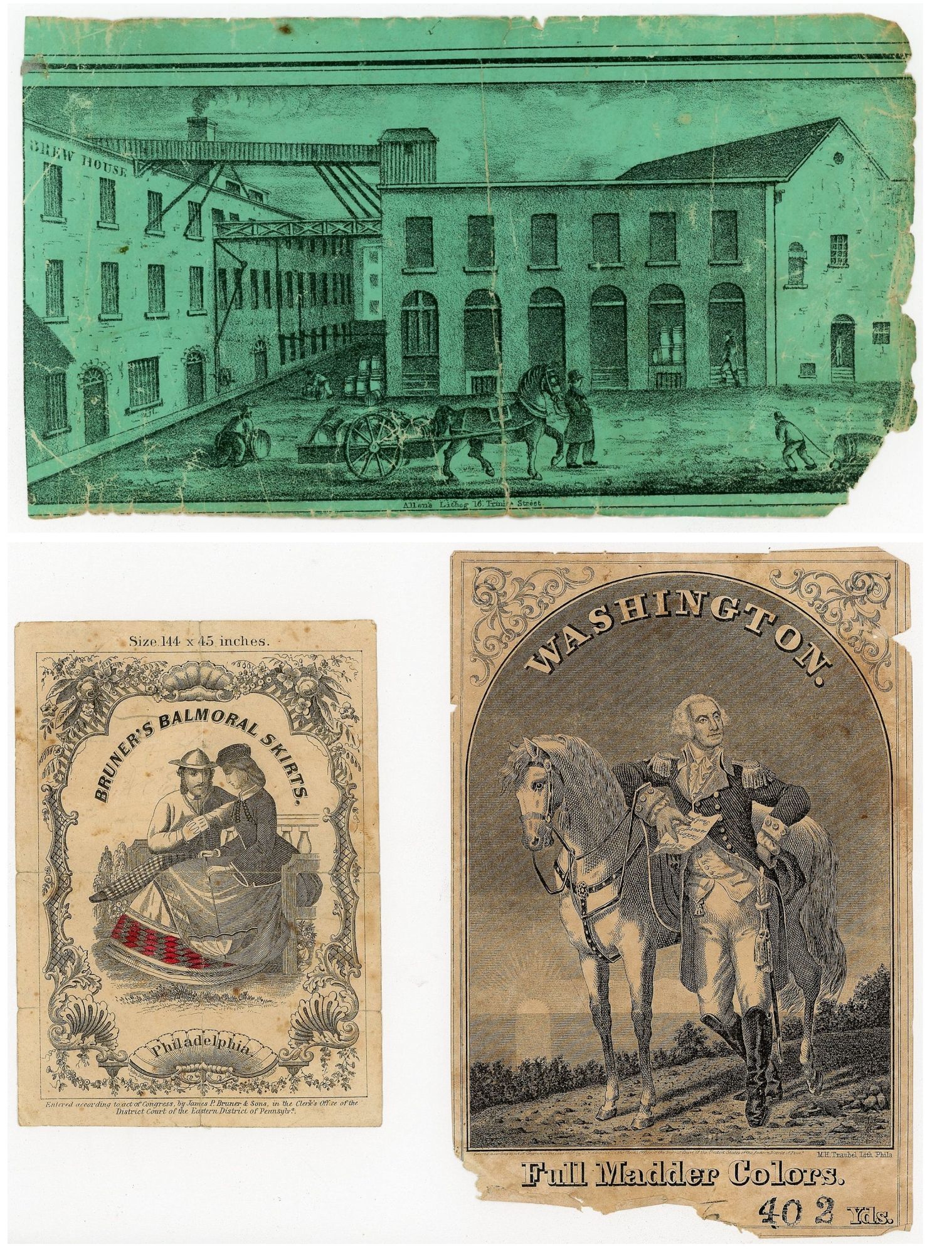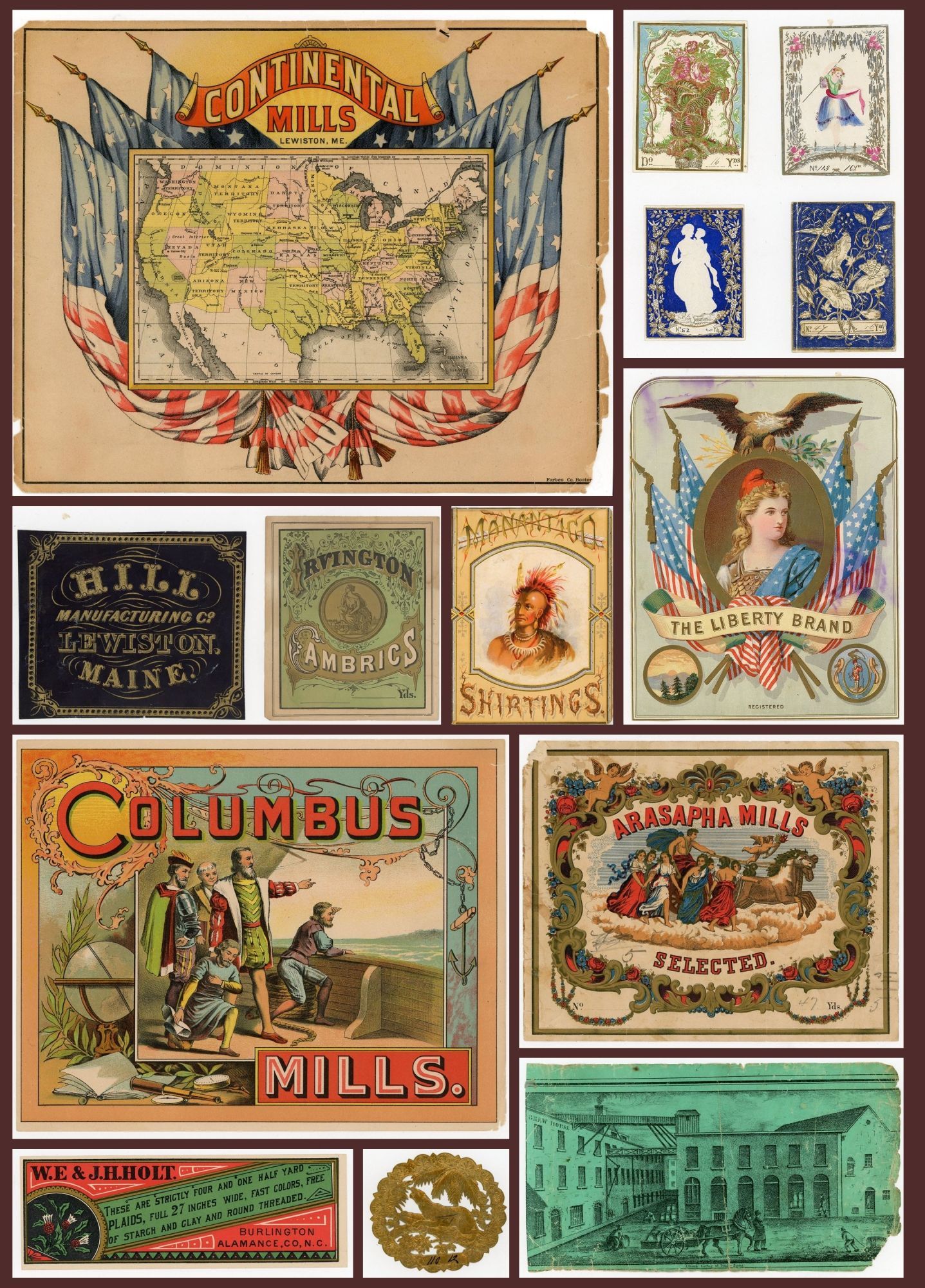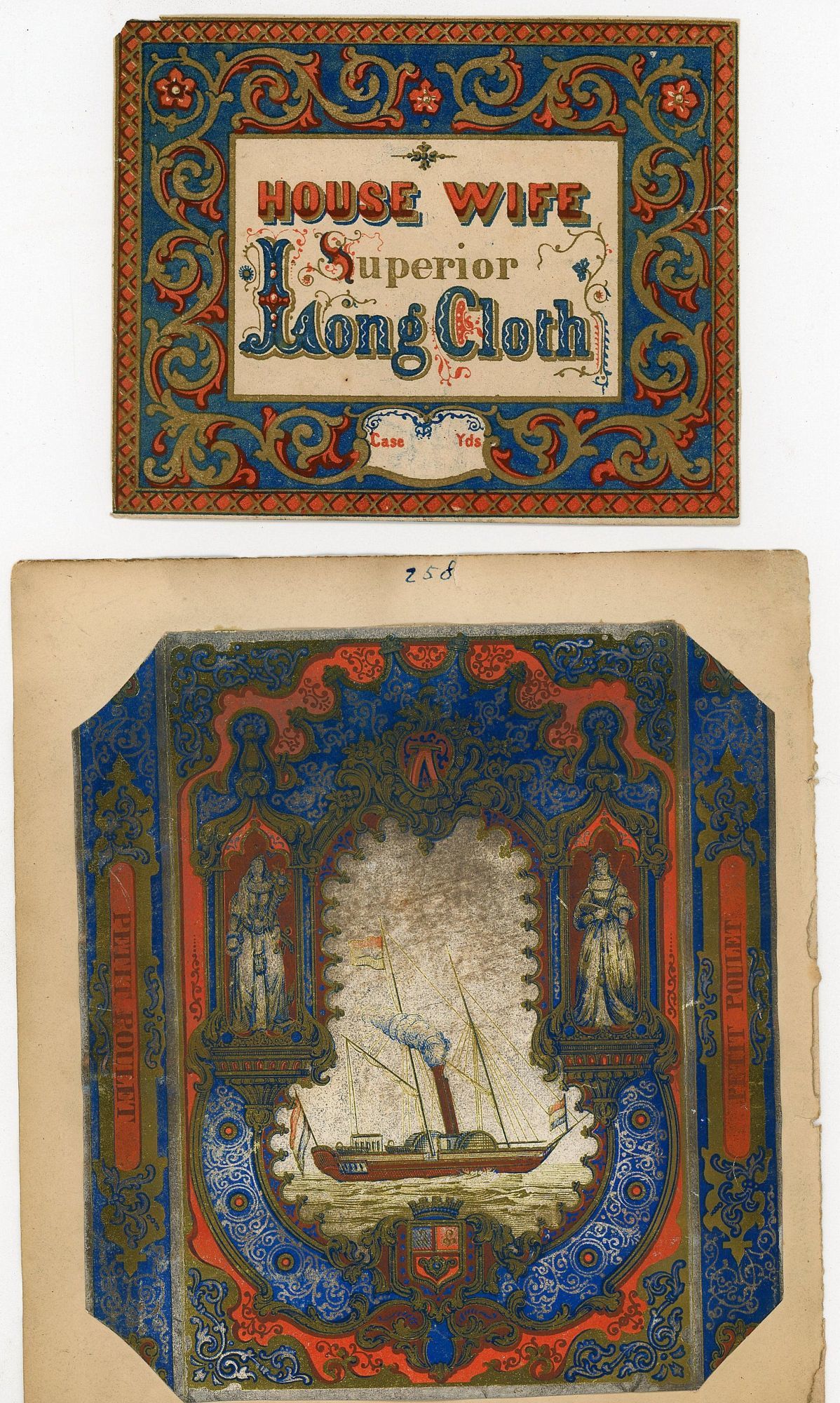 A collection of over 50 paper Fabric Labels or "tickets" demonstrating print, design and culture 1850s-1890s