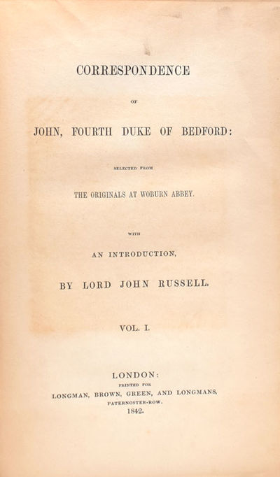 Correspondence of The Fourth Duke of Bedford selected from the Originals at Woburn Abbeu with an Introduction by Sir John Ruseell