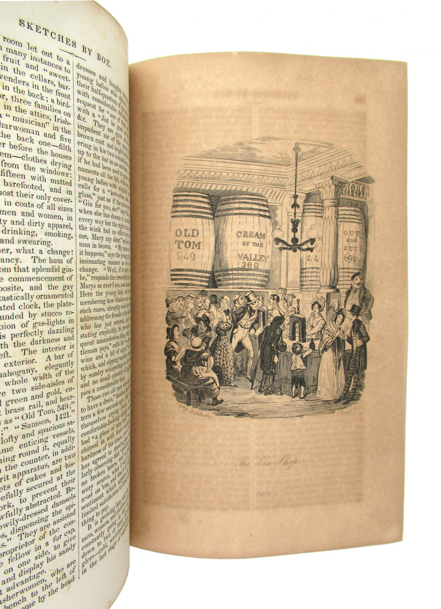 Philadelphia: T.B. Peterson, 1855. Very Good. Philadelphia: T.B. Peterson, ca. 1855. Later Edition, part of publisher's uniform edition set of Dickens' works. Octavo. 268 pages. Frontispiece with tissue guard and 19 additional black and white plates by Cruikshank, complete. Brown cloth with gilt decoration to spine. All edges speckled.
