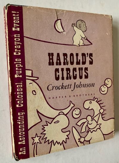 New York: Harper & Brothers, 1959. Pictorial boards. Very Good +/Very Good. Crckett Johnson. A solid copy of the 1959 1st edition of this, the 5th title in the wonderful "Harold and the Purple Crayon" series. Tight and VG+ (light abrading along the front panel's upper tip) in a bright, price-intact ($1.50), VG dustjacket, with very light creasing --and several small closed tears-- to the panel edges, minor soiling at the rear panel and just a touch of light chipping at the spine ends. Still though, attractive and very presentable. 64mo (miniature), "An Astounding, Colossal, Purple Crayon Event!" (from the title page).