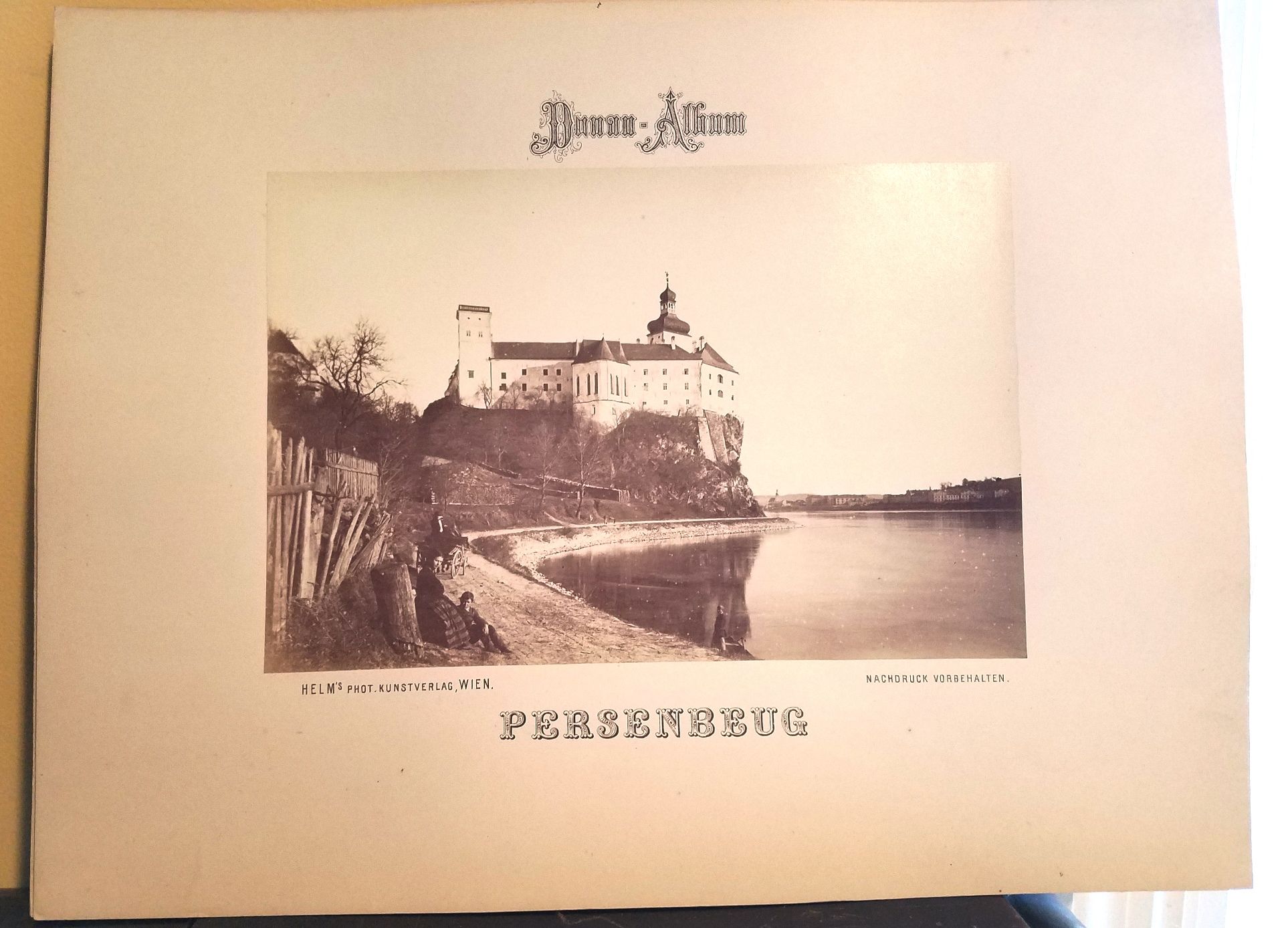 Vienna: Helm, [1868]. First Edition. Photograph. Just a bit of fading to the images. Near Fine and scarce. Six 8-1/8" x 5-1/2" albumen photographs on 12-3/4" x 9-3/4" mounts of various towns in Austria and Germany: Spitz, Persenbeug, Strudel, Passau, Weiteneck, and Grein, all from DONAU-ALBUM by Helm of scenes along the Danube. The complete album contained anywhere between 20 and 35 images and has auction records as high as 5000 Euros.