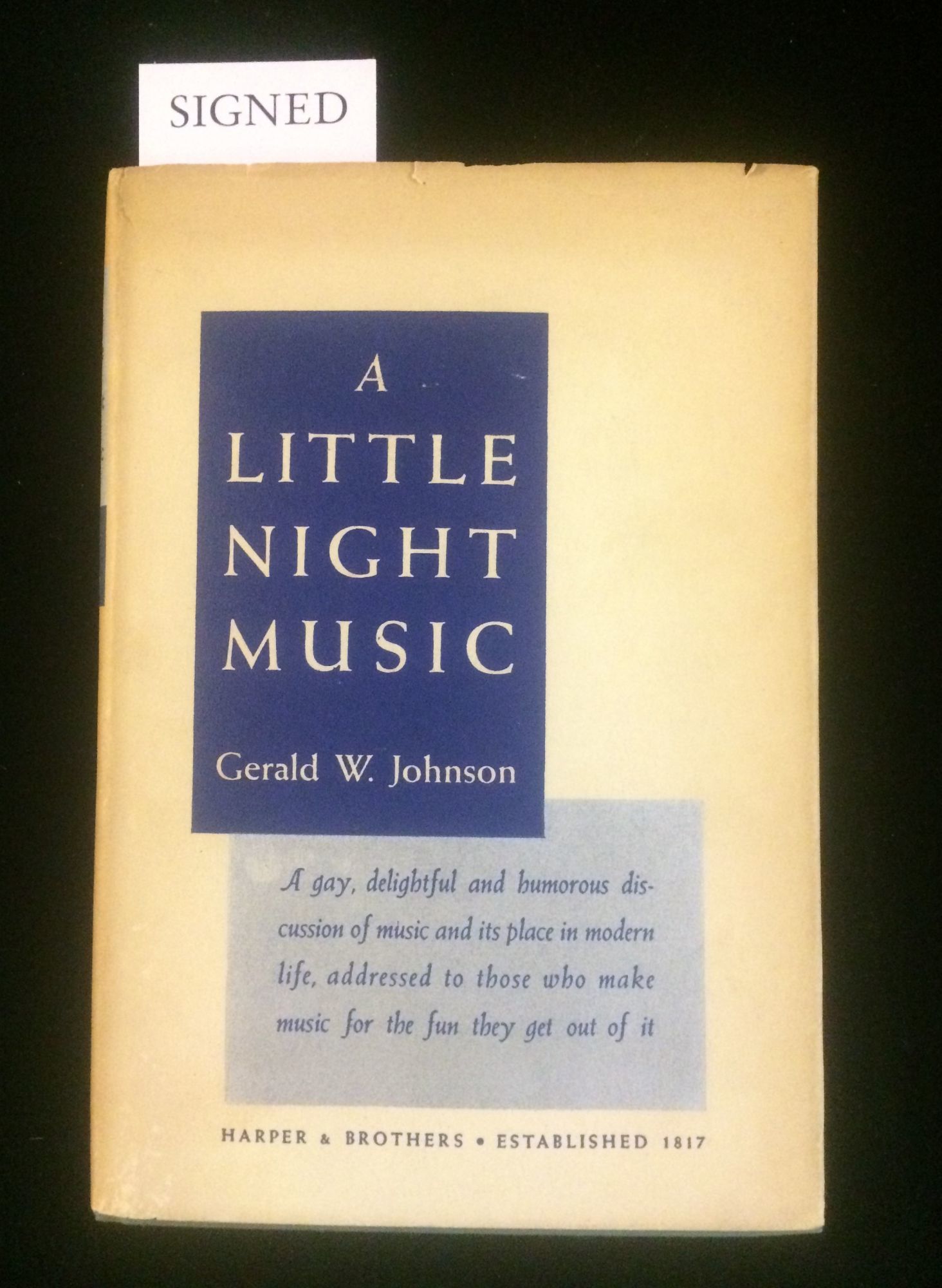 NY: Harper& Brothers, 1937. Hardcover. Near Fine/Very Good +. Plainly signed by author Johnson upper right corner ffe, and then with an unrelated gift inscription dated year of publication center ffe. A hardcore newspaper reporter takes to keyboard as music cultural critic with self-deprecating humor and valid, sensible insight.