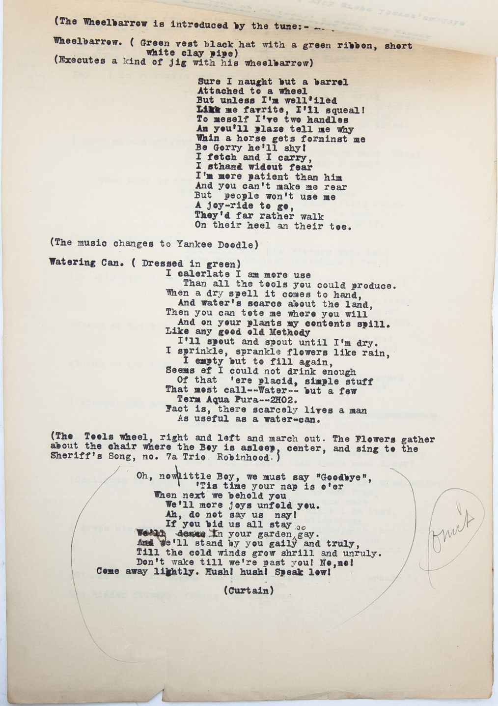 Typed Playscript Unsigned for The Flower Garden (8 pages undated)