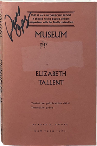 New York: Alfred A. Knopf, 1985. Uncorrected Proof. Paperback. Very Good. Very Good. A scar from a removed sticker and some manuscript writing on the front, some other rubbing on the spine. Square and firmly bound, marked "Press Copy" on the front endpaper, clean otherwise.