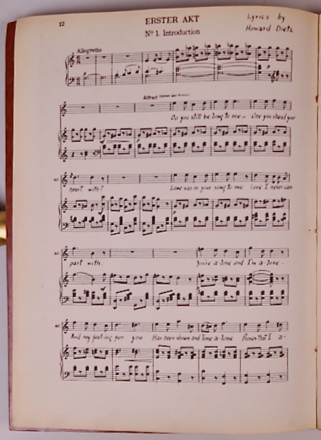 Photographic copy of an unidentified printed piano-vocal score with printed manuscript text. . Text in English by H. Dietz and G. Kanin.