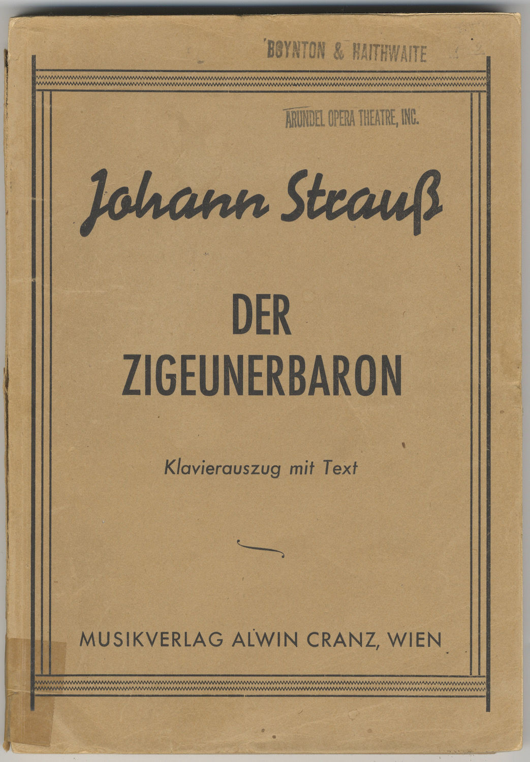 With handstamps to upper portion of upper wrapper ("Boynton & Haithwaite" and "Arundel Opera Theatre, Inc.").