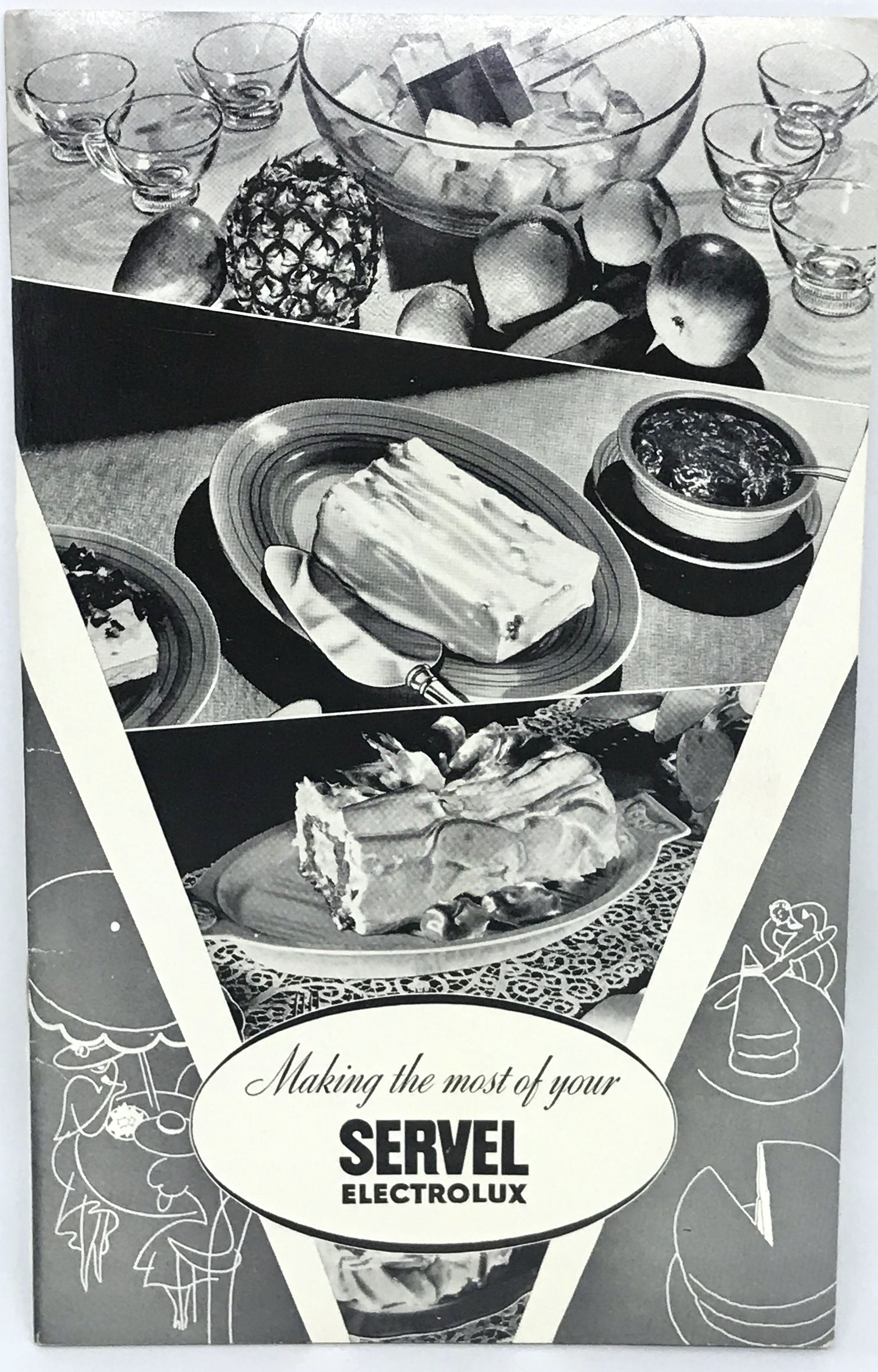 Evansville, Indiana: Servel, Inc., 1942. Staplebound. Black illustrated wraps. Near fine. 47 pages. The Servel Company (formerly Servel-Electrolux) was an American producers of heating and cooling appliances founded in 1922 by Colonel William McCurdy. This recipe book includes various dishes made possible by electric cooling and advertises for Servels Electrolux home refrigerator. Black and white illustrations and food photographs mixed with recipes throughout. Clean, crisp copy