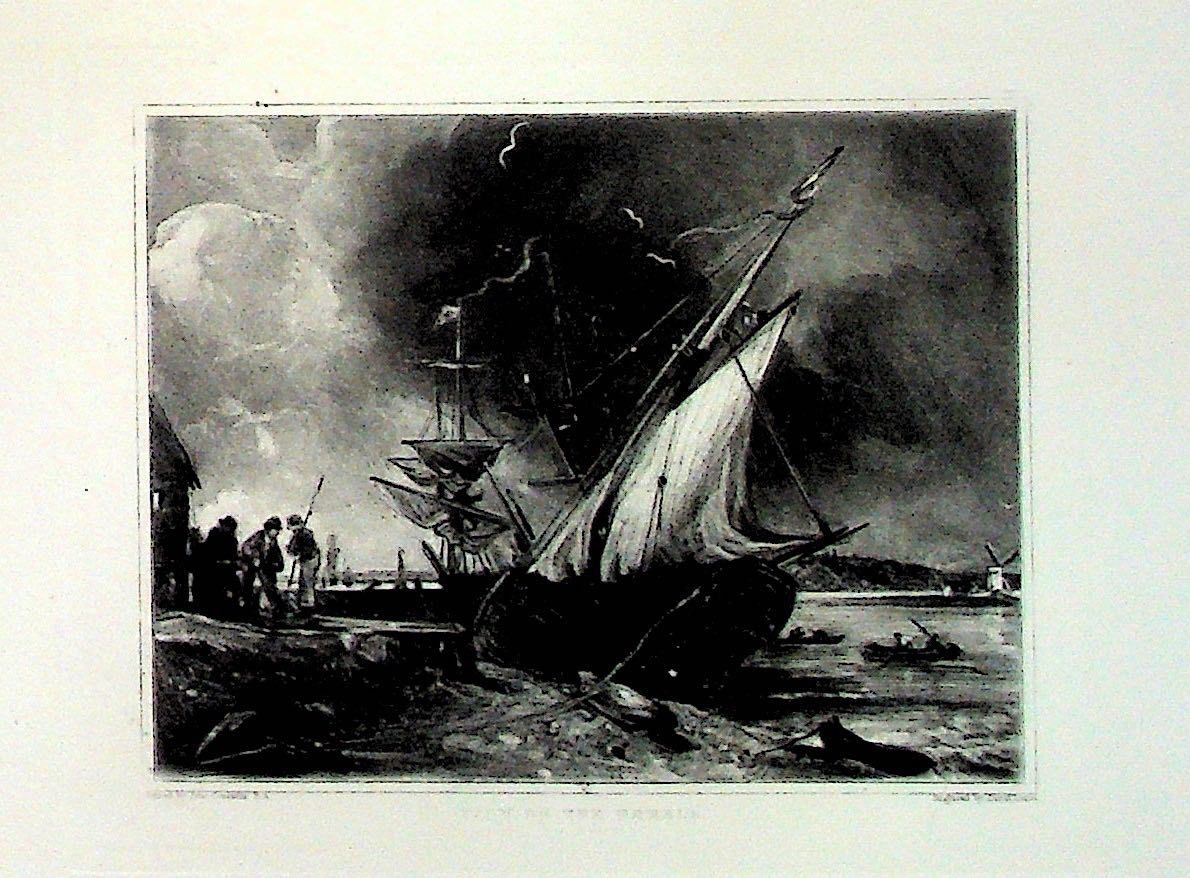 London: Henry G. Bohn, 1855. Very Good. From the Second edition. "The Art of John Constable, like that of Hogarth, of Wilson, and of Stothard, was scarcely noticed by those among the titled and the wealthy of his countrymen who put themselves forward as the patrons of Painting; and had he not been independent of his profession for support, he could not have lived by it. But whatever may have been the loss to the artist, the world has been in some degree the gainer; for the apathy of patronage left Constable, as Hogarth had been left, to the free and unrestrained bent of his own genius, and the scenes he most loved became subjects of his pictures" (introduction). This mezzotint was engraved by David Lucas based on a drawing by John Constable. Depicts a ship that has gone aground with a storm in the background. Minor chipping to edges of paper and minor browning to margins. A few small extraneous ink marks from when the plate was printed. Suitable for framing. Paper size: 11 x 17. PRINT/021121.