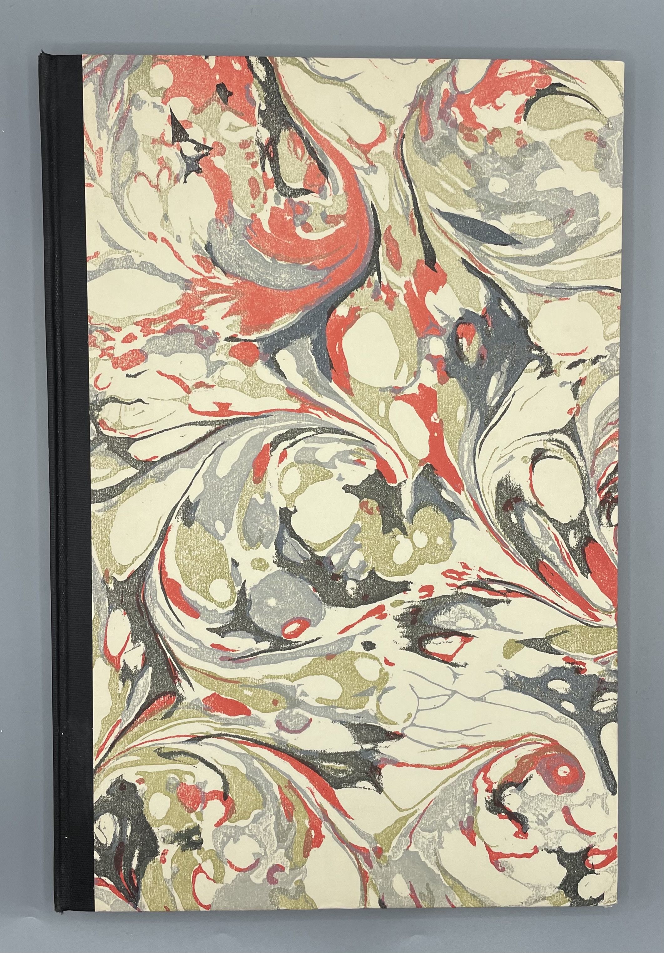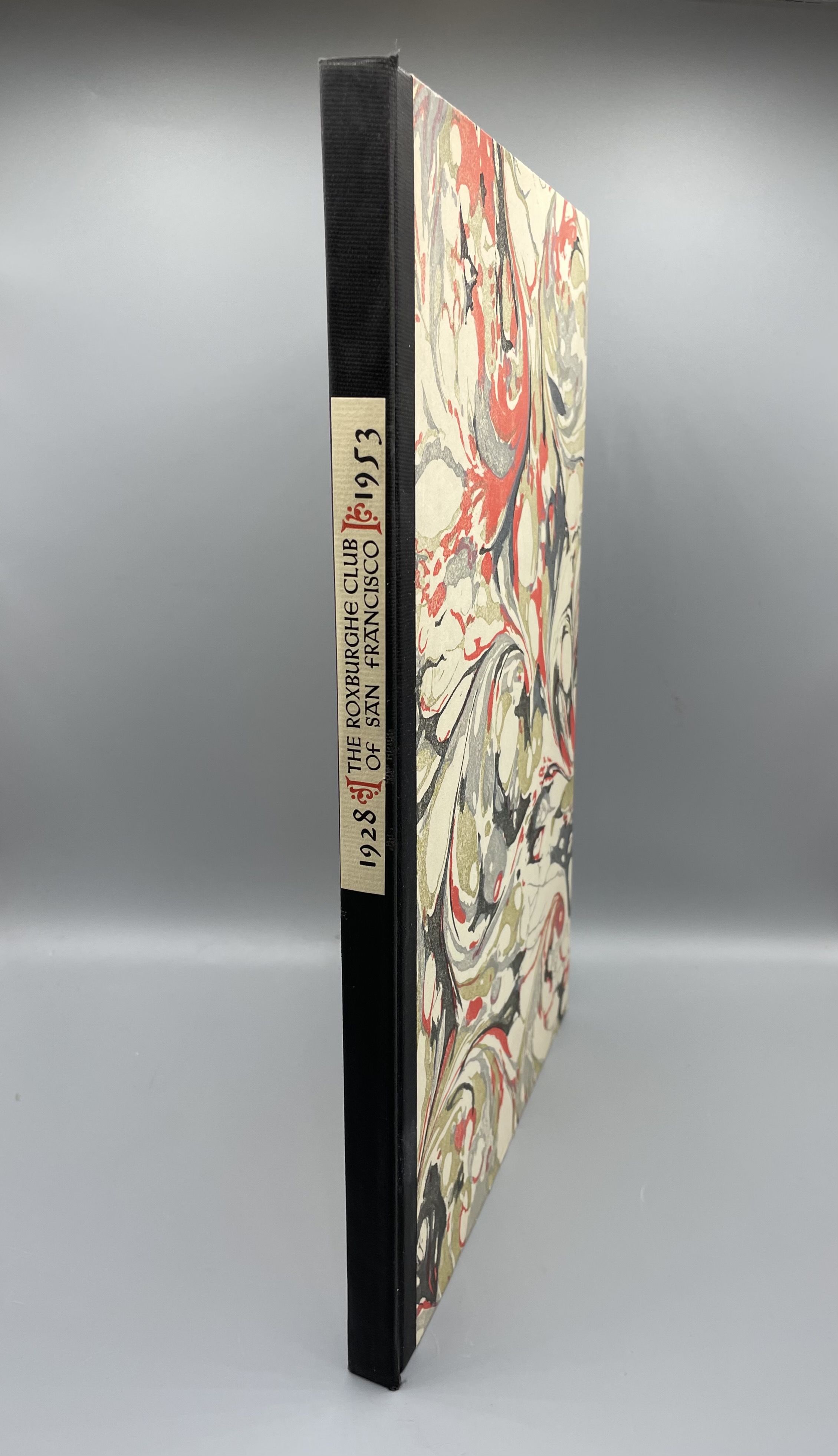 San Francisco, 1954. First edition, limited. Hardcover. Near fine. Folio [40 cm] 1/4 black cloth with bright marbled paper over boards. Top edge trimmed; other edges deckled. Text printed in red and black. Ex-libris Santa Rosa publisher and rancher Lee Lawrence Stopple, with his bookish bookplate on the front pastedown. A lovely production. One in an edition of 200 copies printed by Roxburghers Edwin and Robert Grabhorn.