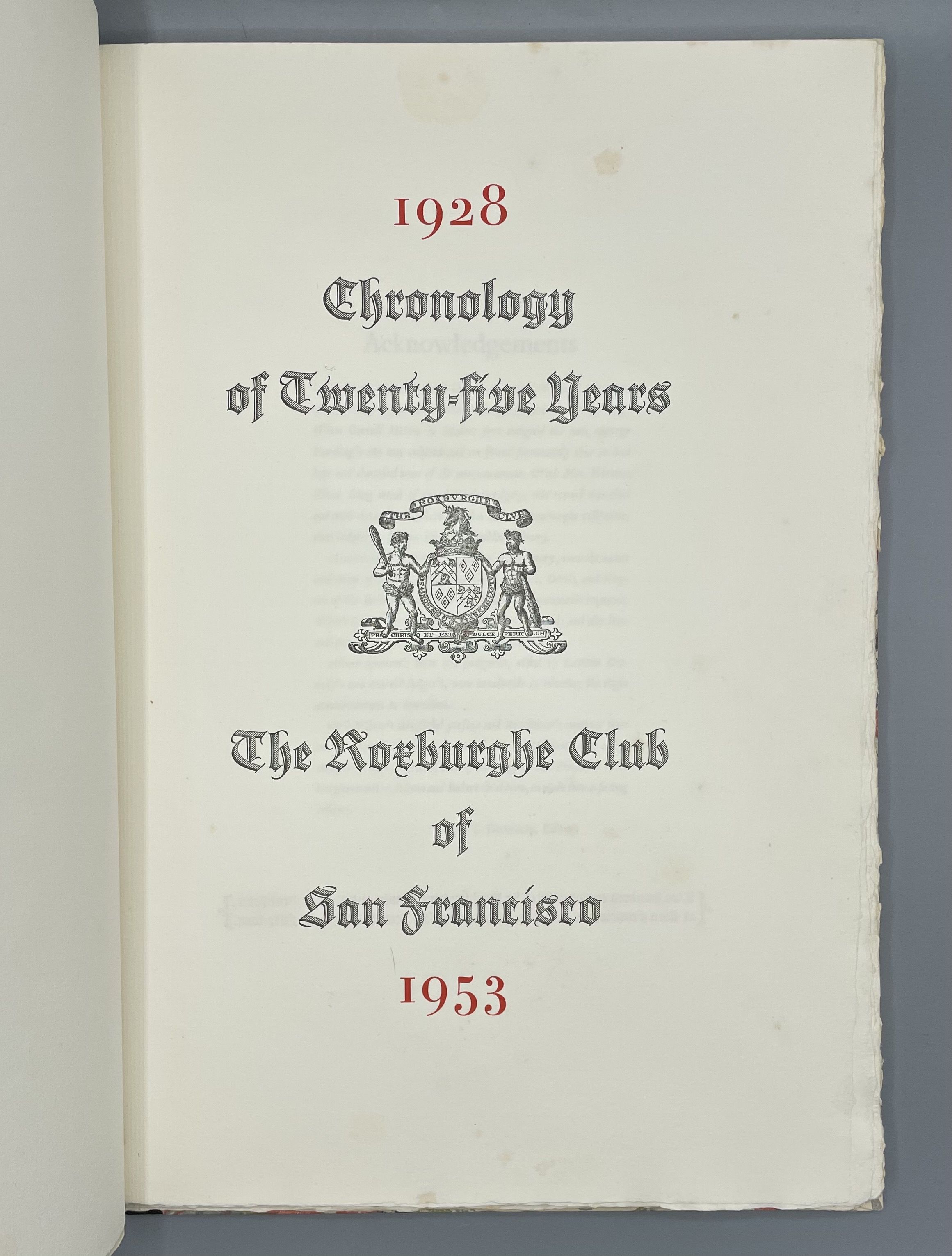 The Roxburghe Club of San Francisco: Chronology of Twenty-Five Years 1928-1953