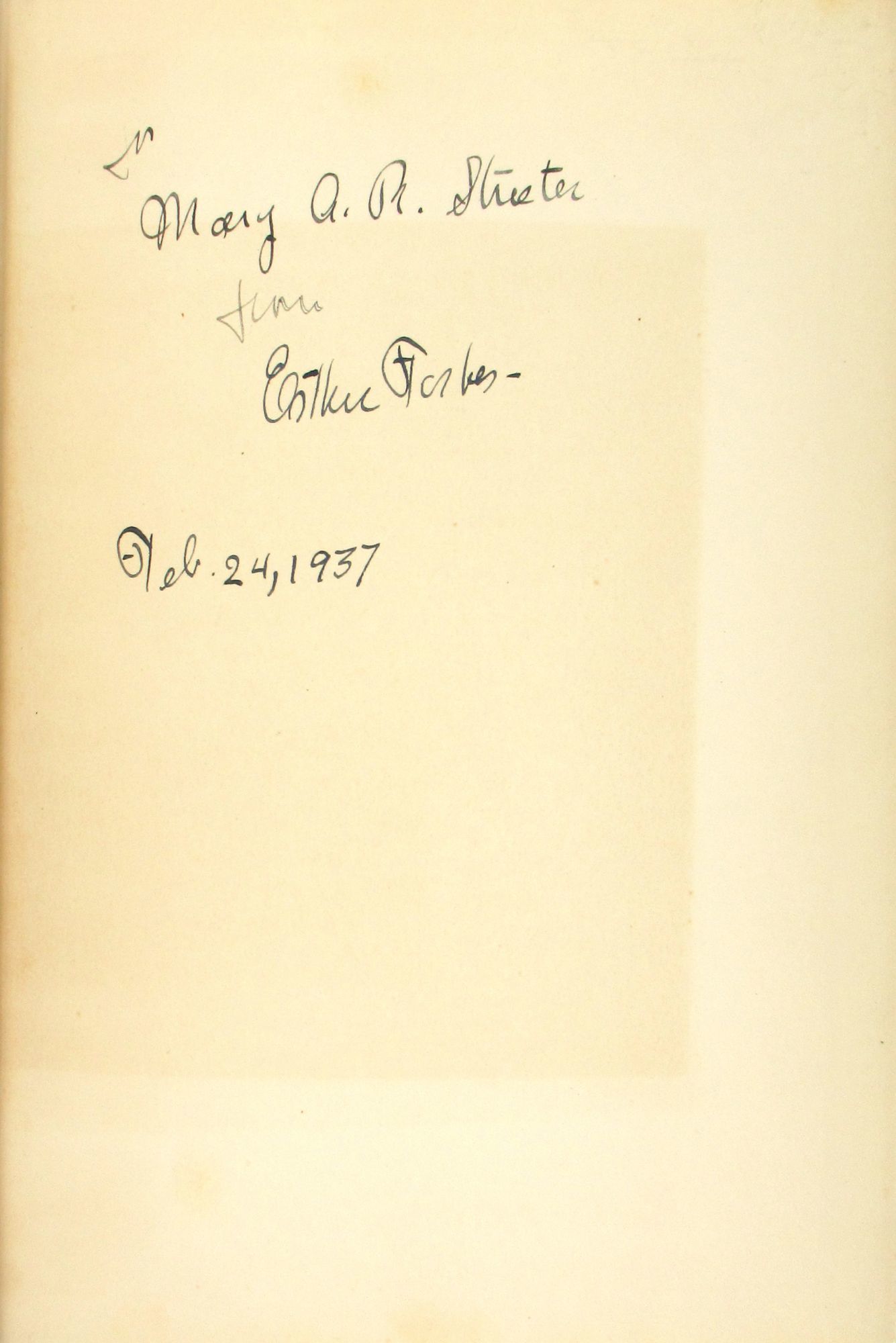New York: Harcourt, Brace and Company, 1937. Very Good/Very Good. New York: Harcourt, Brace and Company, 1937. Stated First Edition. Signed by Forbes on front free endpaper with inscription to previous owner. Octavo. 556 pages. Illustrated dust jacket with $2.50 price present. Navy boards stamped in gilt.