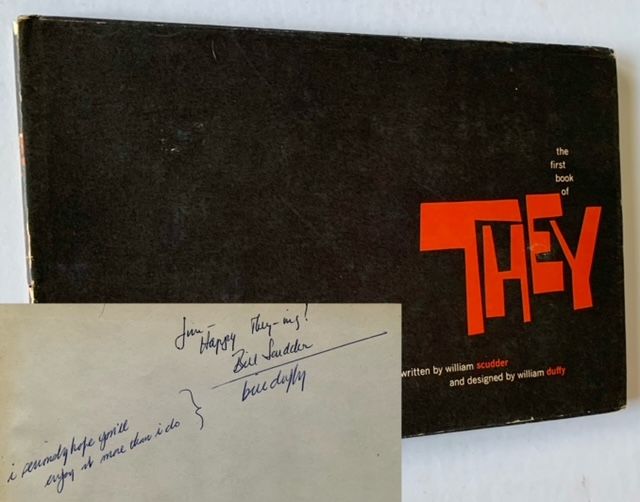 New York: Harcourt, Brace & World, 1961. Boards. Near Fine/Very Good +. INSCRIBED BY BOTH WILLIAM SCUDDER AND WILLIAM DUFFY on the front free endpaper. A solid copy to boot of the 1961 stated 1st edition. Clean and Near Fine in a crisp, price-intact, VG+ dustjacket, with very light creasing and chipping --and several small closed tears-- along the panel edges. Light offsetting as well to the dustjacket's rear panel. Oblong octavo, nicely designed throughout by William Duffy.