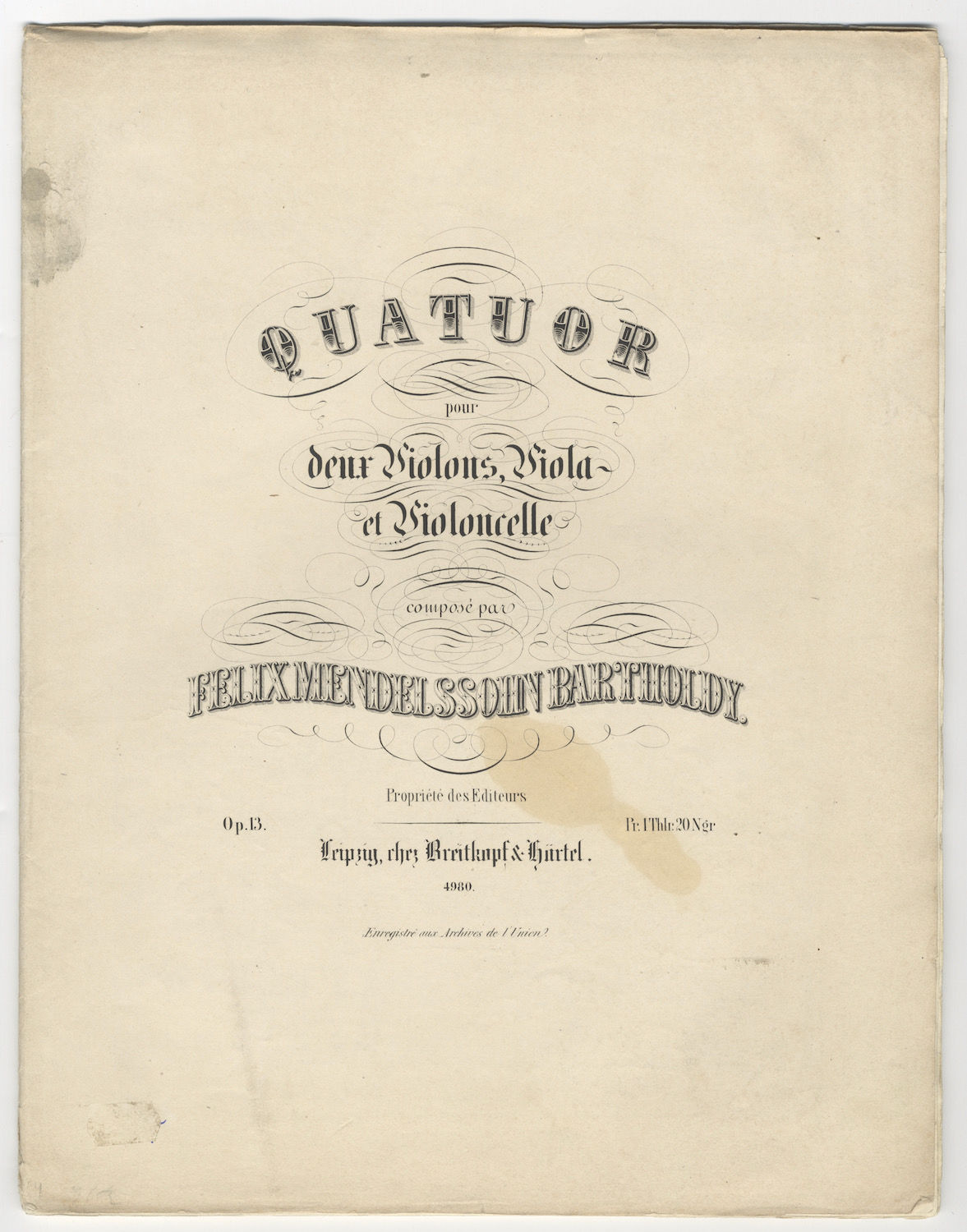Leipzig: Breitkopf & Härtel [PN 4980], 1850. Folio. Unbound, as issued. [1] (title), [2] (blank), 3-13, [i] (publisher's catalogue; 9, [i] (blank); 10; 8 pp. Engraved.