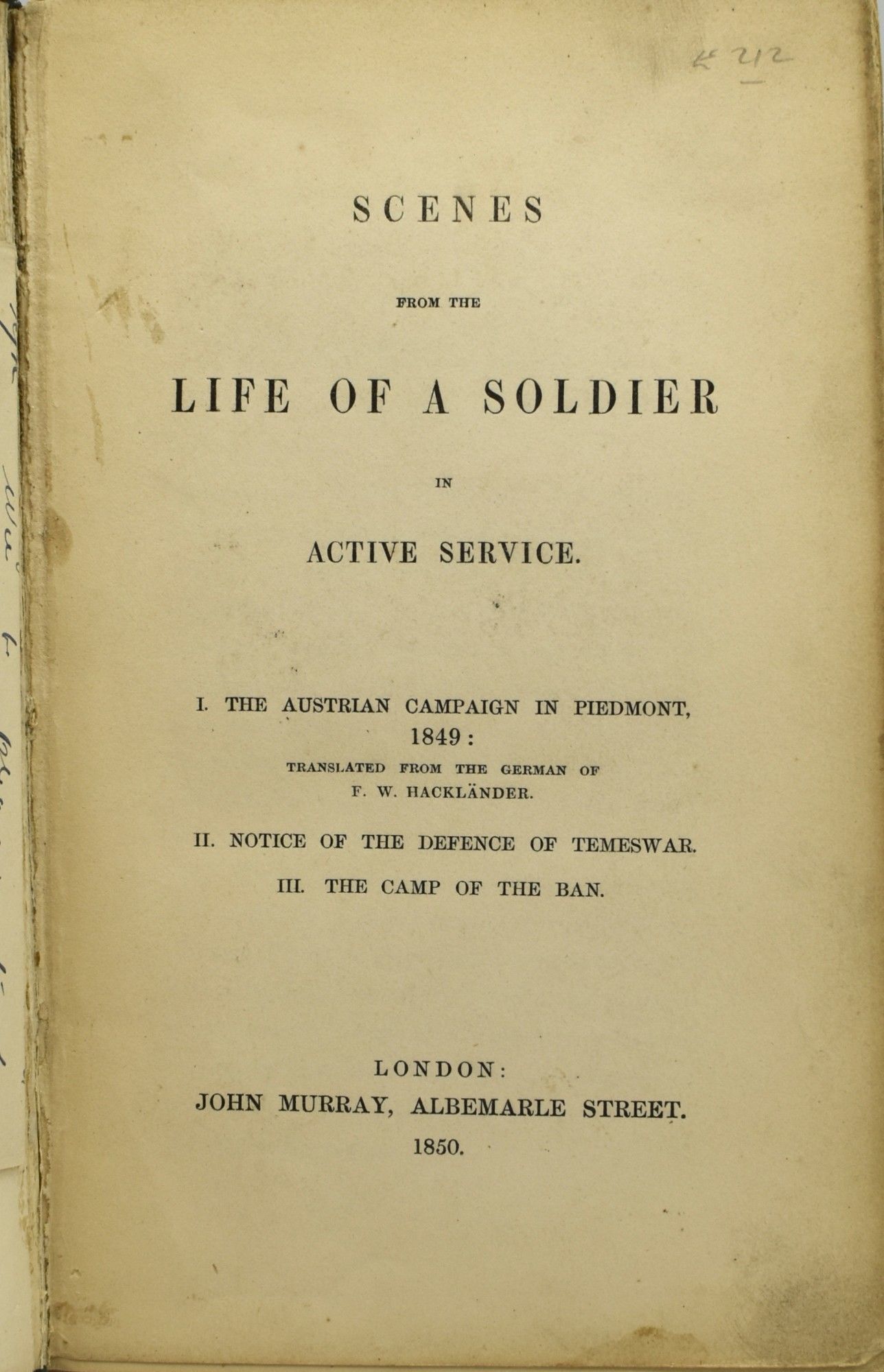 SCENES FROM THE LIFE OF A SOLDIER IN ACTIVE SERVICE. I. AUSTRIAN CAMPAIGN IN PIEDMONT, 1849; II. NOTICE OF THE DEFENCE OF TEMESWAR. III. THE CAMP OF THE BAN