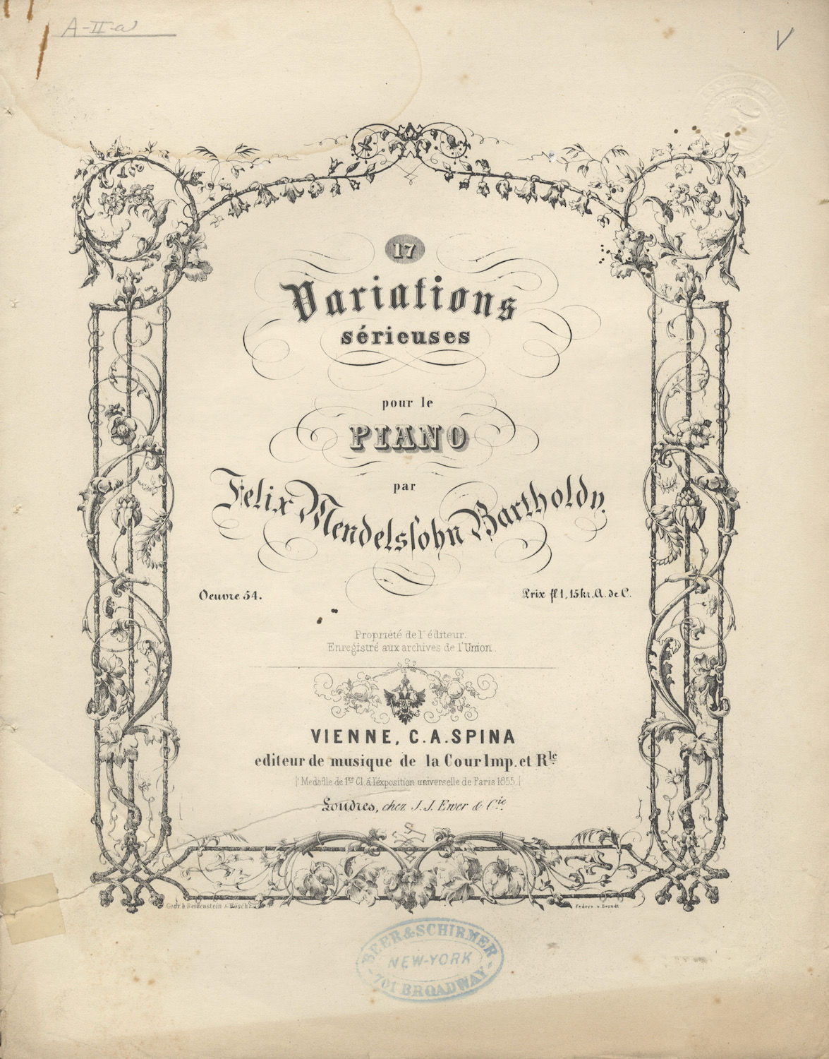 [Op. 54]. 17 Variations sérieuses pour le Piano ..