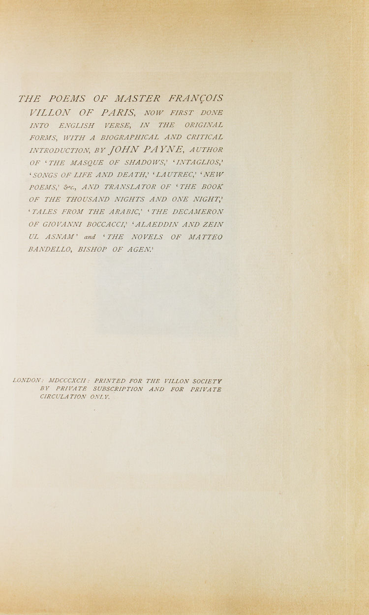 - London: Printed by the Villon Society by Private Subscription and for Private Circulation Only, nd