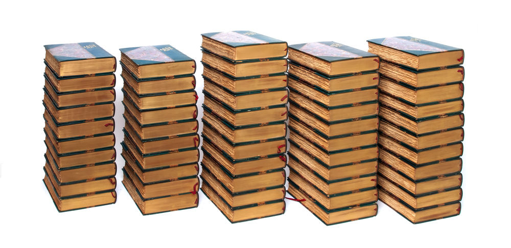 Along with The Three Musketeers, The Count of Monte Cristo cemented Dumas’ reputation as France’s premier adventure writer and a forefather of popular fiction. "First to sheer narrative power -- Dumas was a master of narrative -- and secondly to the theme. It is a story for all time, a 19th-century version of 'The Arabian Nights,' a gorgeous piece of escapism from the drudgery of daily life" (Sudley). The present 53 volume set brings together a significant gathering of the author's literary oeuvre, not only in a beautiful binding but with the further addition of numerous water-colored illustrations that bring the adventure and romance of his works to life. Fine.