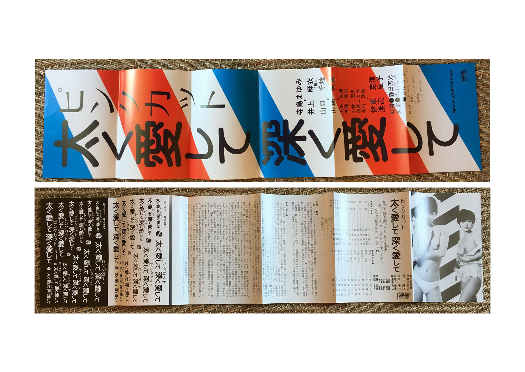 Tokyo: Nikkatsu, 1983. Three vintage borderless reference photographs and a triple parallel fold color brochure (in Japanese) from the 1983 pinku film.