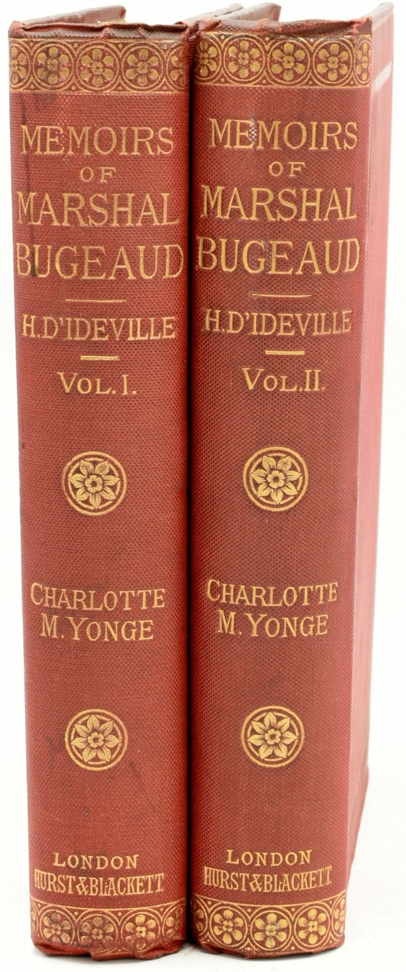 London: Hurst and Blackett, Publishers, 1884. Very Good binding. Two large 8vo. volumes; in the publishers red cloth ruled in blind to the perimeters of the boards; with decorations and titling in gilt to the spines; xv, [1] 363 pages; viii, 365 pages, followed by 16 pages of ads for Hurst and Blackett; engraved frontispiece in Volume I; the hinges are lightly cracked but certain holding very well. Each volume with the bookplate of The Writers to Her Majesty's Signet in each volume.~~Thomas Robert Bugeaud was the Governor General of Algeria. An attractive set. Very Good binding.