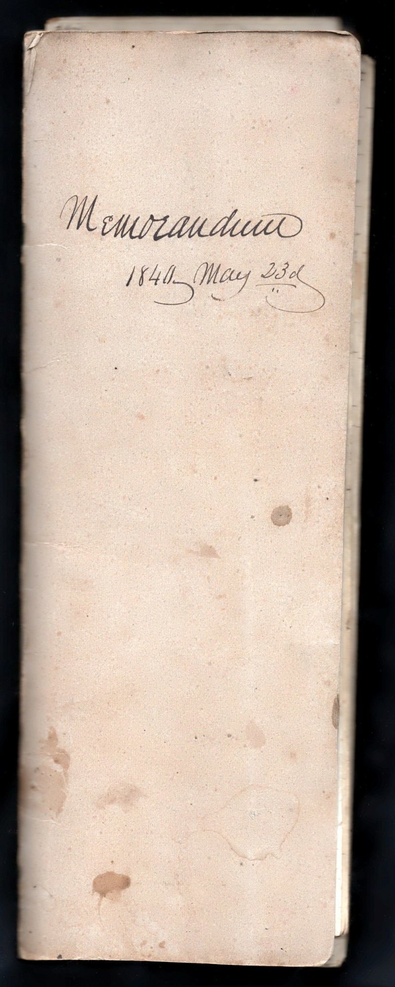 4) The ledger dates from 1840-1950, and appears to record various personal financial transactions of Warren D. Rowley. The front cover of this ledger is embossed with the seal of the Bank of Central New York, Utica. Includes two pages from 1840 and eight from 1850. The remainder is blank. Some of the items are: candles, molasses, flour, "paid Patrick 1 1/2 day", eggs, 1 1/2 yards of flannel, and beef. One page notes the amount Rowley paid in taxes for 1850, some of which are tax records are for his business with Curry. Brown leather covers with embossed seal. String binding. Measures 5 3/4" x 3 3/4".