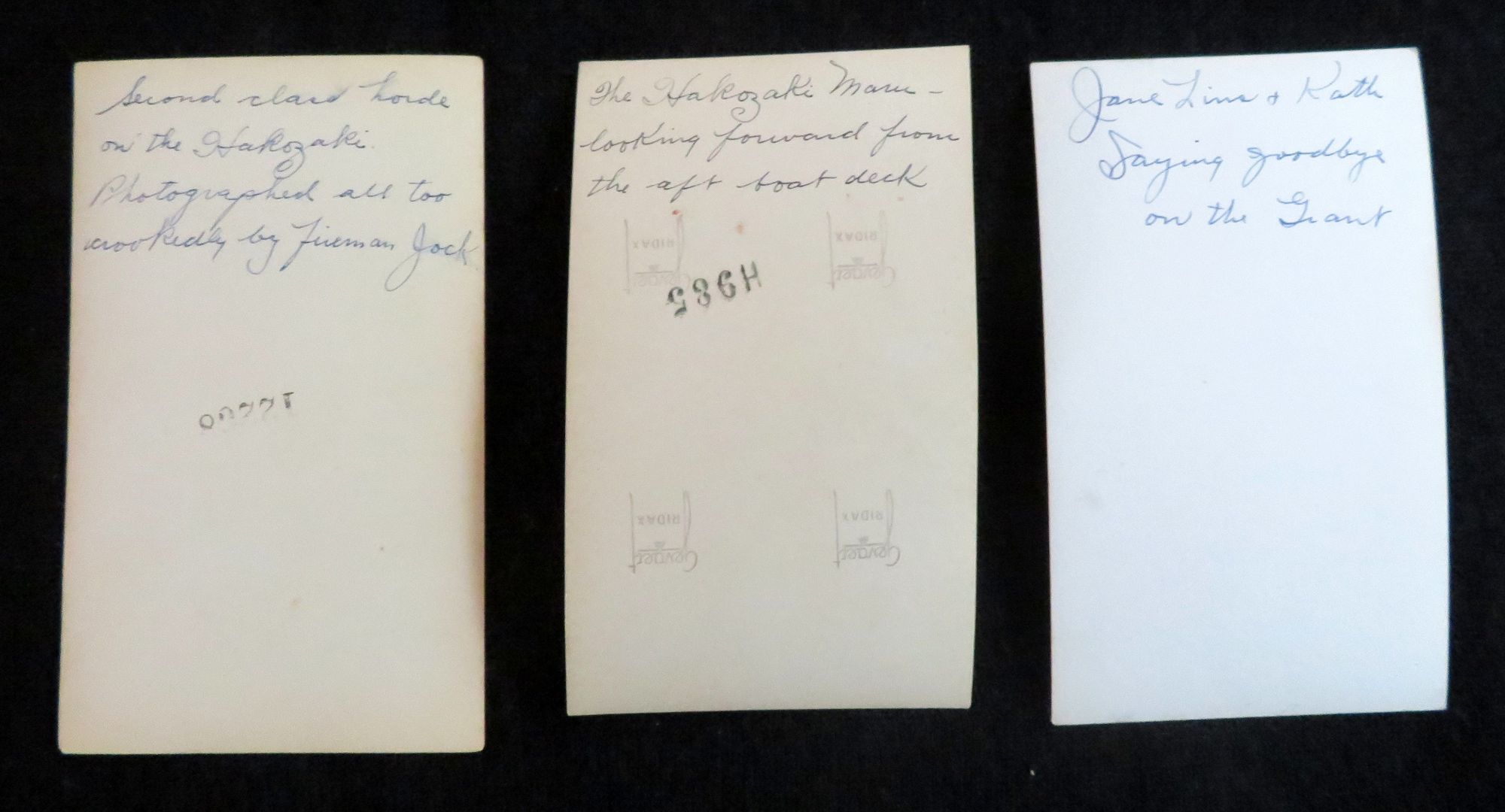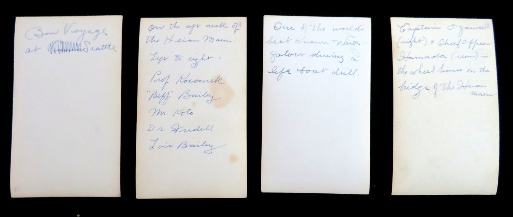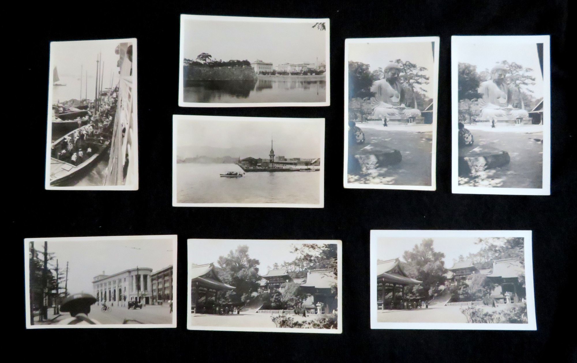 To view the collection, please click on the following link: https://photos.app.goo.gl/VRyHn35DufQaCG3D6. The Heian Maru was a Japanese ocean liner owned by the NYK Line that launched in 1930 and offered a transpacific service between Yokohama and Seattle. The ship was requisitioned by the Japanese during WWII and was sunk in 1944. There are eleven (11) photographs from his journey across the Pacific on the Heian Maru, including one of the ship's officers Captain Ogaura and Chief Officer Hamada. While in Japan, he stopped in Tokyo, Kobe, Kamakura, and Yokohama.