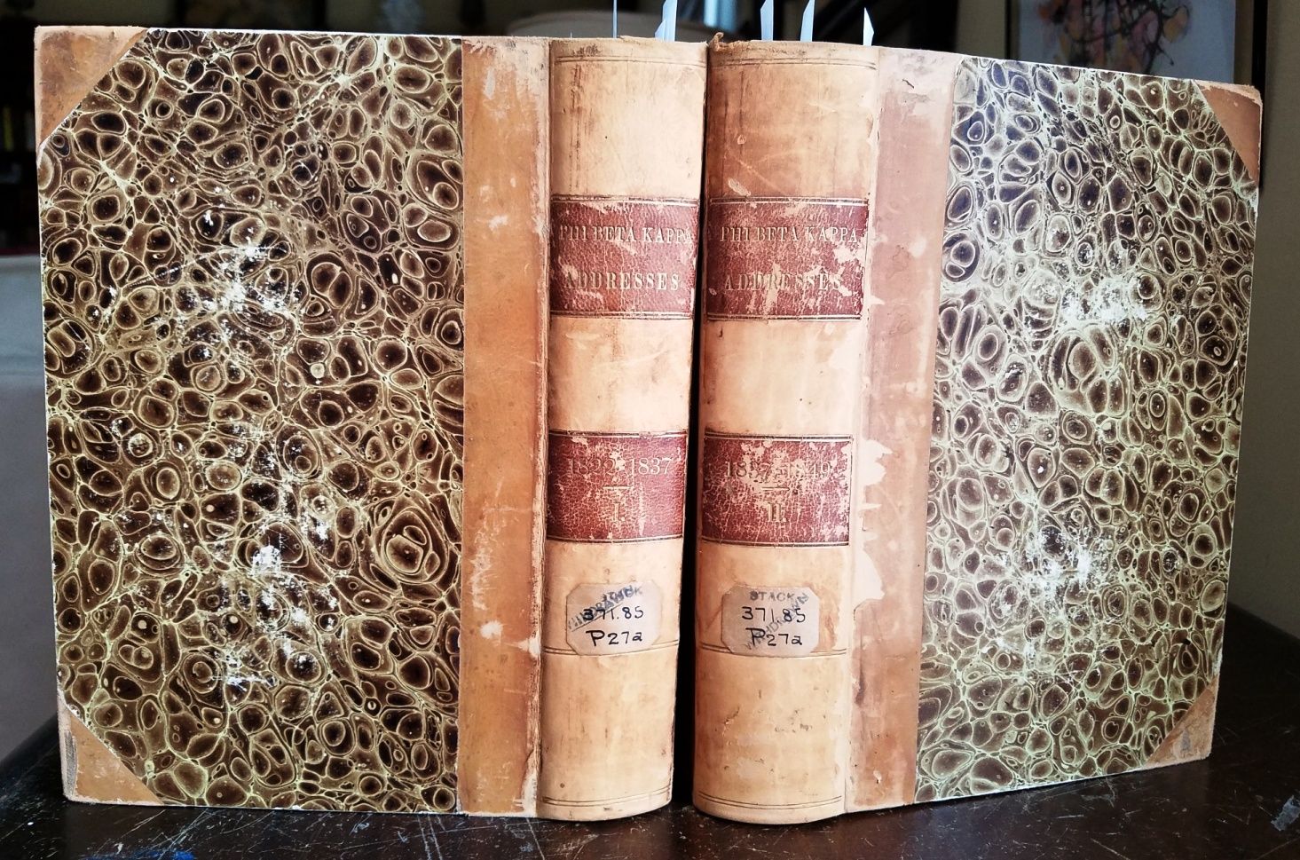 A SAMMELBAND OF 32 PAMPHLETS, all PHI BETA KAPPA Addresses, including Emerson's AN ORATION, DELIVERED BEFORE THE PHI BETA KAPPA SOCIETY, AT CAMBRIDGE, AUGUST 31, 1837 and Story's A DISCOURSE PRONOUNCED BEFORE THE PHI BETA KAPPA SOCIETY, INSCRIBED by Story