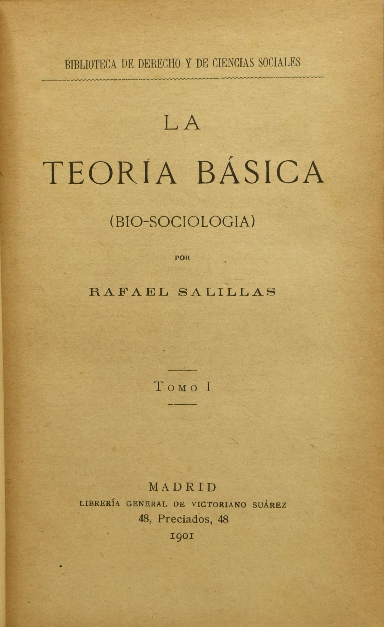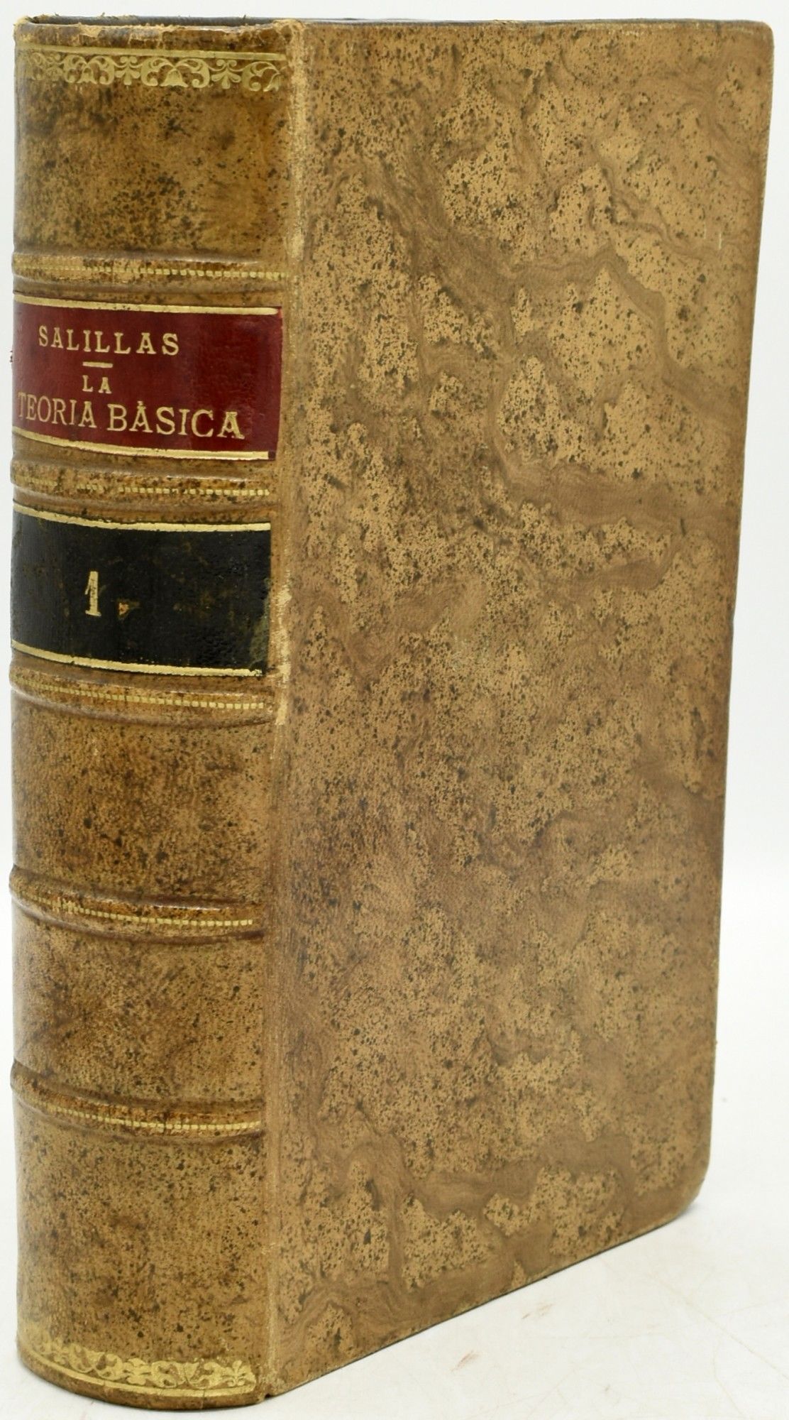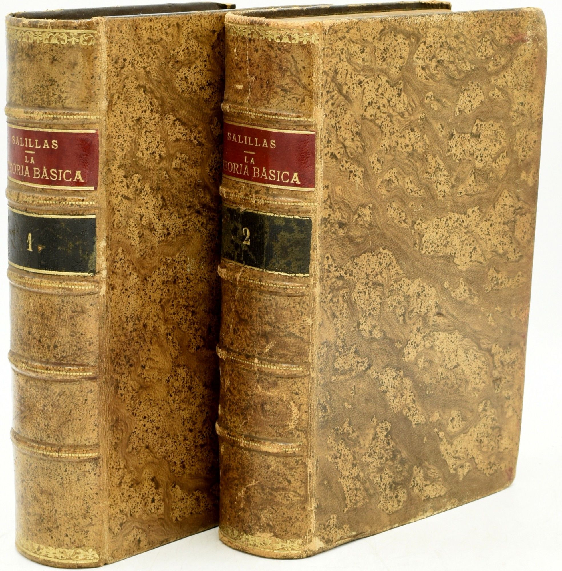Madrid: Libreria General de Victoriano Suarez, 1901. First Edition. Full Leather. Near Fine binding. Two 8vo. volumes; in mottled leather with black and burgundy labels lettered in gilt; xv, [3], 4-757 including Index; [7], 8-775, including Index; each volume with the rubber stamped from the books of Carlos M. Fredenhagen, and the stamp of Arnoldo Moen editor of Nueva Libreria Europa.~~Publihsed as part of the Law and Social Science Library issued by Victoriano Suarez, this work is Rafael Salillas' "Basic Theory of bio-sociology". Salillas was quite eminent the field of sociology and criminology. His thinking about Criminal Anthropology culminated in this two volume work "The Basic Theory".~~~. Near Fine binding.