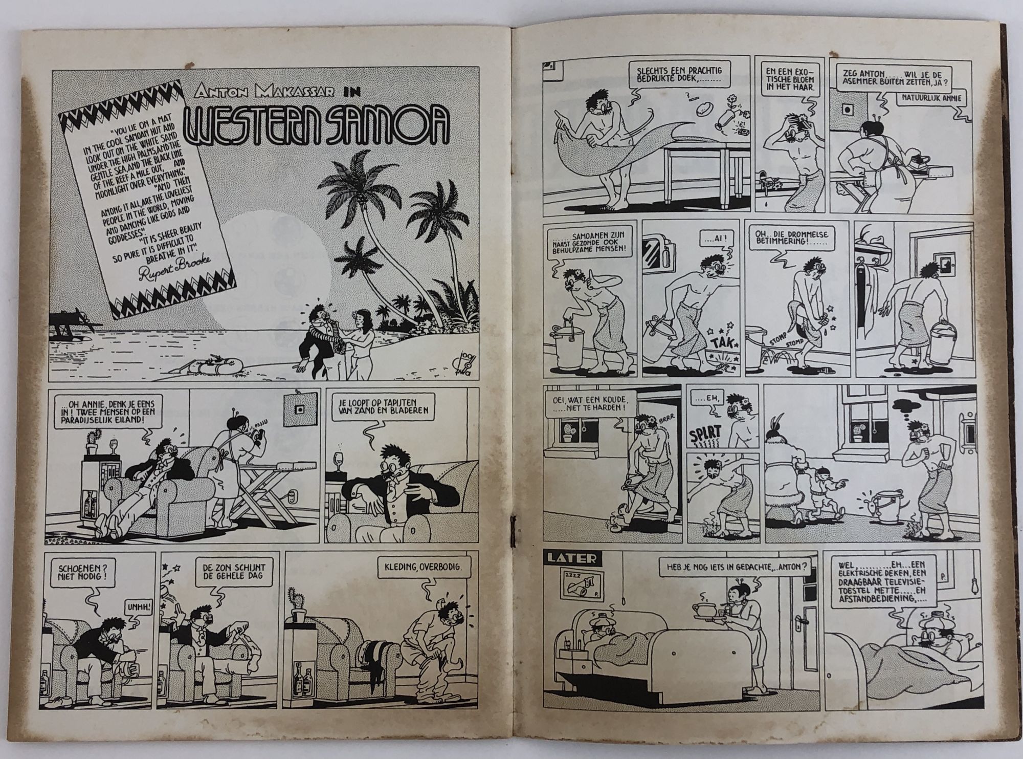 Amsterdam: Real Free Press, 1975. Softcover. VG/FN; minor wear to cover with small partial tear to back cover (along edge); evidence of water damage throughout (brownish stains to back cover and page edges); discoloration of staples; center page detached from lower staple. 1340738. Special Collections.