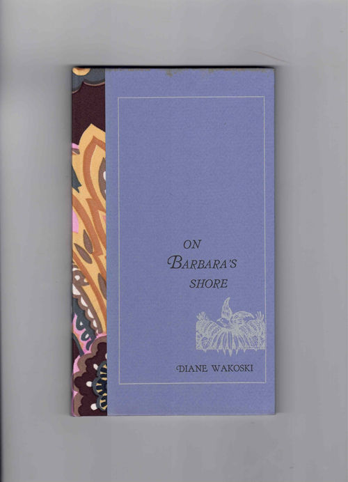 Los Angeles: Black Sparrow Press, 1971. Signed, limited edition. Hardcover. Very good. Slim duodecimo [21 cm] 1/4 decorative floral cloth with blue paper over boards. The top edge of the text block is just a little foxed. Number 20 in a hardcover edition limited to 100 copies. Signed by Diane Wakoski on the limitation page.