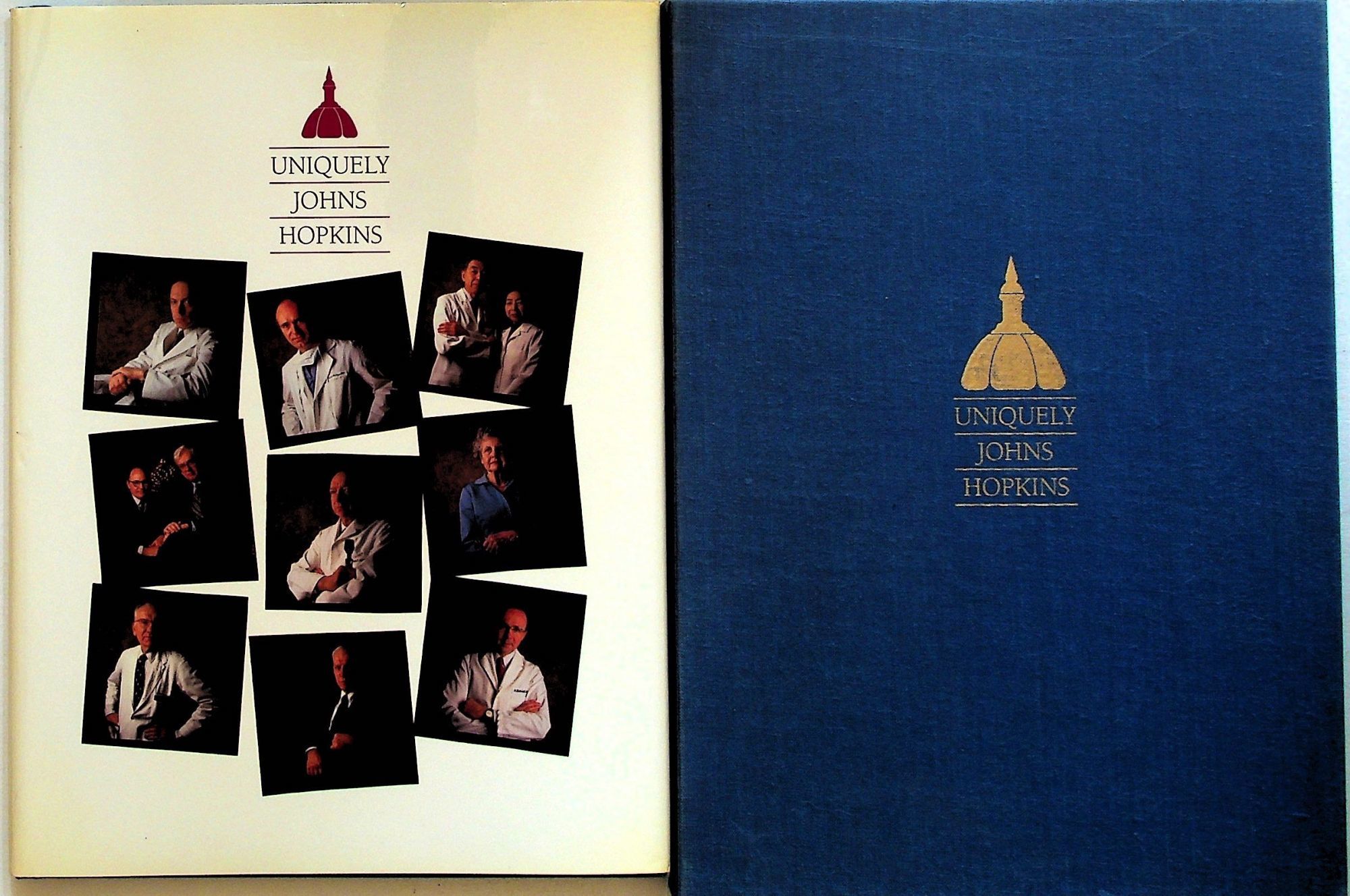 Baltimore: Johns Hopkins University School of Medicine, 1988. Hardcover. Fine/Fine. Hardcover. A brief history of Hopkins University with a spotlight on several important doctors and contributors. Gift bookplate to front pastedown. Thin 4to. Blue cloth boards with gilt title to spine and front board. Clean and bright. In white dust jacket with black title to spine and front panels. Housed in a blue cloth covered slipcase. Minor wear and rubbing to edges and panels of slipcase. 36 pages. BALT/042121.