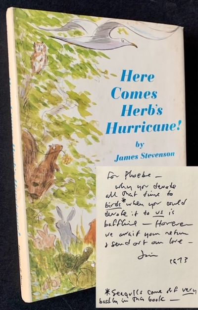 New York: Harper & Row, 1973. James Stevenson. A WARM, FULL-PAGE INSCRIPTION BY JAMES STEVENSON adorning the front free endpaper. A solid copy to boot of the 1973 stated 1st edition. Tight and VG+ (light spotting at the front cover) in a crisp, Near Fine dustjacket. Octavo. nicely illustrated throughout by the author himself in black-and-white.