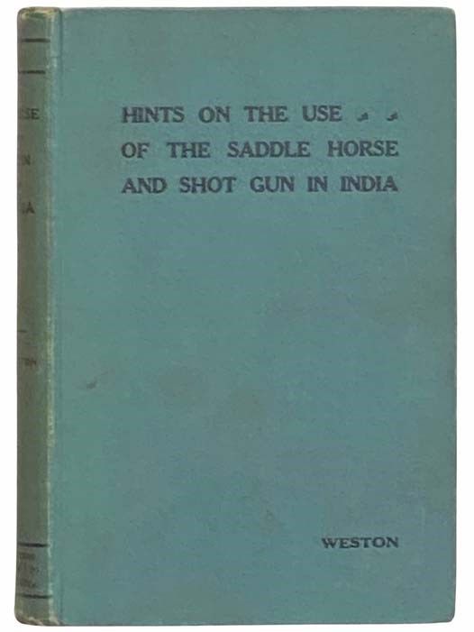 Calcutta & Simla: Thacker, Spink & Co, 1914. First Edition. Hard Cover. Good/No Jacket. First edition. Owned by a member of the Royal Bombay Yacht Club. Boards lightly soiled, front hinges weakening. 1914 Hard Cover. iv, 232 pp. Written for beginners. Includes: Part I. Hints on the Use of the Saddle Horse: Introductory - The Choice of a Horse - To Find the Age of a Horse - The Care of the Horse - Lameness and Sickness - Grooming - Riding - "Making" a Young Horse - "Making a Young Horse (Continued) - A Riding School Course - Jumping - Long Marches - Bitting - Saddling and Saddlery - Shoeing - The Halter Twitch - Vices - Picketing Horses - Tent-pegging - A Man and Some Horses - My First Pig; Part II. Hints on the Use of the Shot Gun: Guns for India - Aiming - Snipe - Where to Find Snipe - Equipment and Final Hints about Snipe - Kalij Pheasants and Jungle Fowl - Partridge and Quails - Wild Fowl - The Florican and Likh Florican - Hares - Various - Snipe Shooting on Dry Land - My First Jungle Fowl - Our Local Pharmacopaei - One Way of Doing It - A Day in the Pujah Holidays.