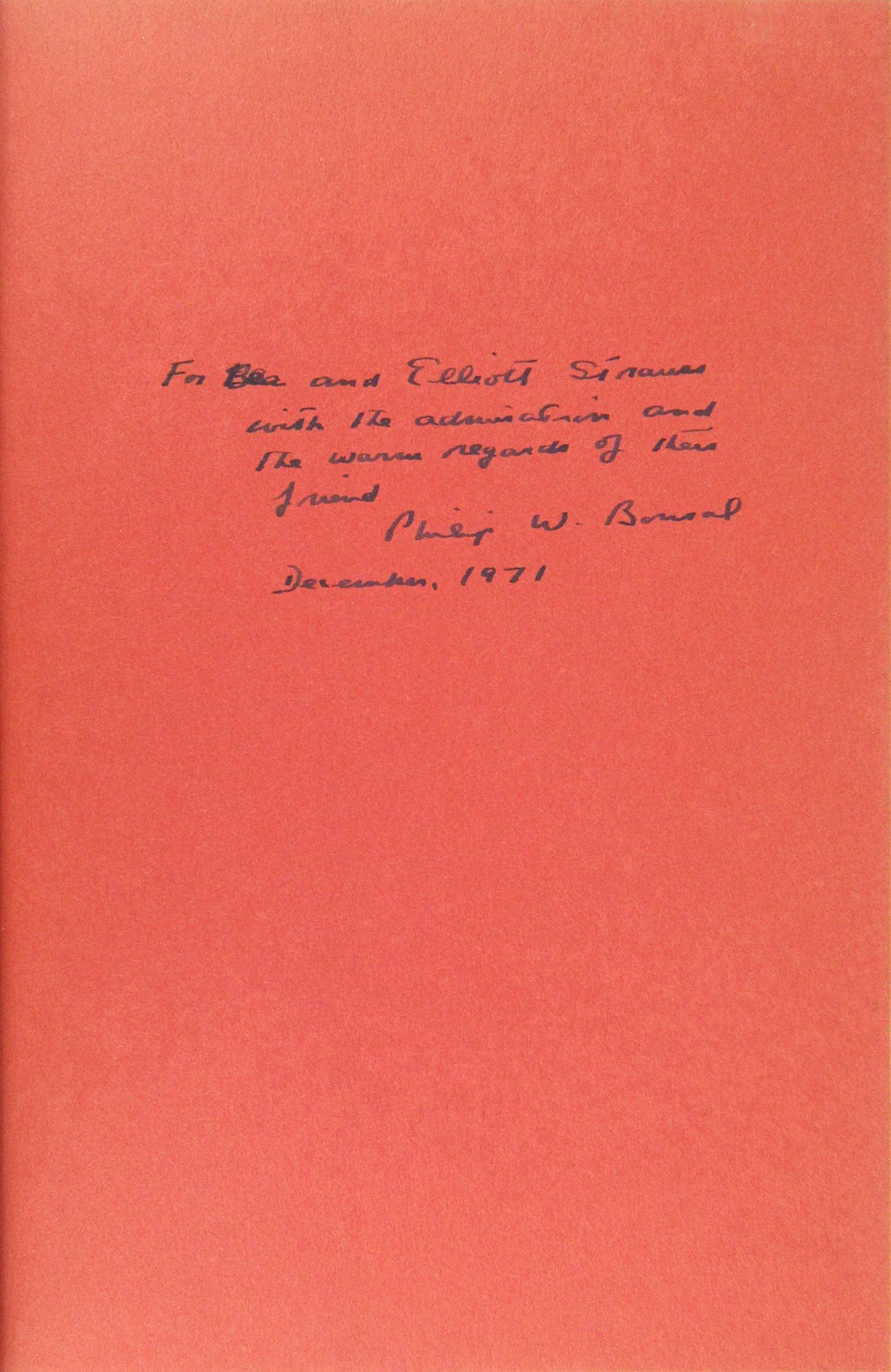 Pittsburgh: University of Pittsburgh Press, 1971. Very Good/Very Good. Pittsburgh: University of Pittsburgh Press, 1971. First Edition. Octavo (23.5cm.); publisher's cloth in black pictorial dust jacket; xii,318pp.; two leaves of photographic illus. printed on rectos and versos. General shelf wear to jacket extremities, including a few small closed tears, spine slightly cocked, textblock foxed throughout, else a Very Good, sound copy overall. Warmly inscribed and signed by the author to front free endpaper.