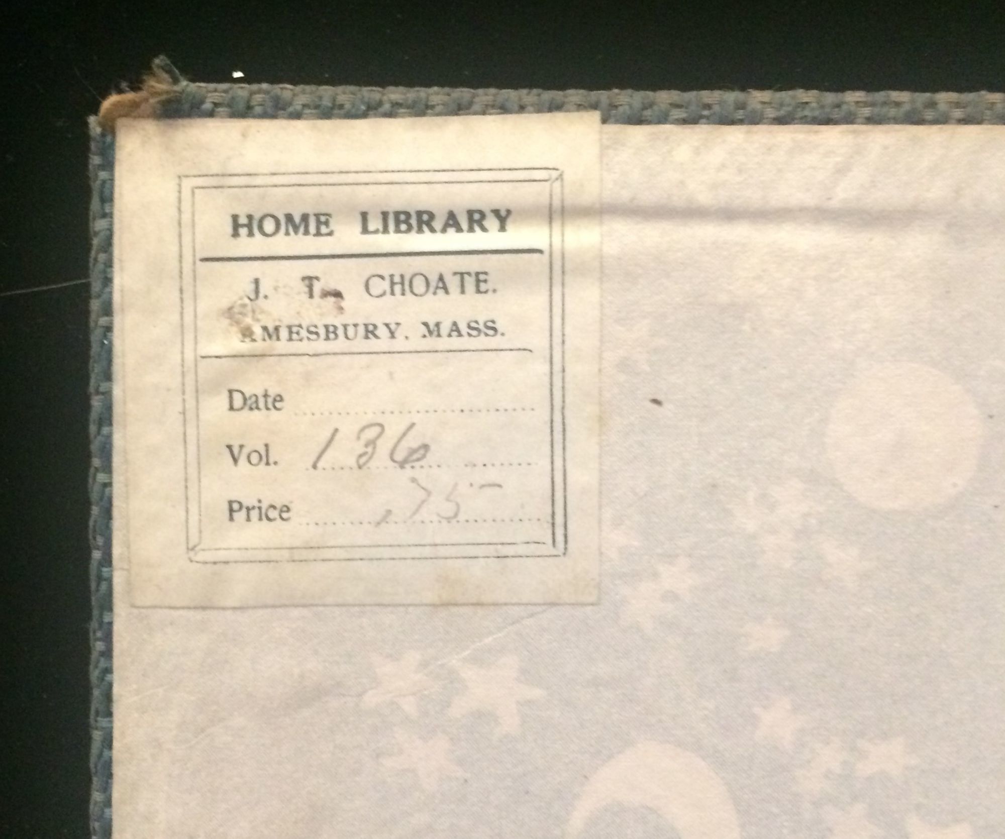 Bostoin: John W. Luce and Company, 1905. 1st Edition. Hardcover. Very Good. A satirical almanac produced by the staff of the John W. Luce publishing company. The staff takes a kitchen sink approach: zodiac readings, gardening hints, bios of the rich and famous like Heddy Green and Teddy Roosevelt. Sophisticated illustrations. Cover pastedown on green, rough-weave patterned cloth. Printed at The Plimpton Press. Provenance is the Choate estate in Amesbury MA with a period Home Library book plate for J. T. Choate of Amesbury on the upper left corner of the front pastedown, which has entries for date acquired, volume number and price (75 cents!). The Choate family figures prominently in the history of the towns on the north shore of Boston: many features of the town of Amesbury still bear the Choate name.