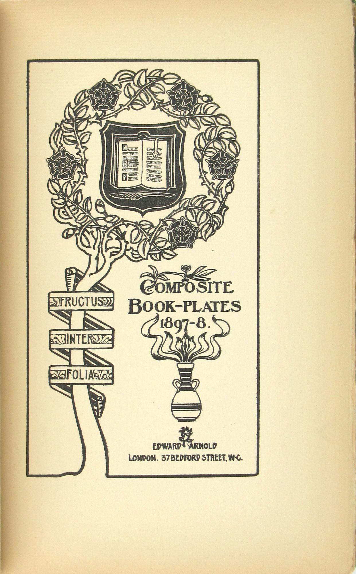 Collection of the latest British bespoke bookplates of 1897, many featuring exquisite Art Deco designs by Theodore Spicer Simson, Frank Bramley, and E. Bengough Ricketts, of the Ex-Libris Society.