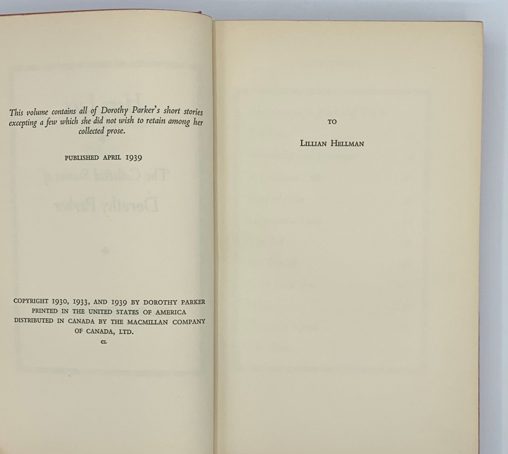 New York: The Viking Press, 1939. First edition. Hardcover. Very good/good. 362pp. Octavo [22 cm] Salmon colored cloth over boards. Publisher's red top stain. Patterned endpapers. The spine ends and corners of the covers are just a bit bruised. In a price-clipped dust jacket, with a number of small closed and open tears in the edges, six of which have been backed with small pieces of tape. The companion volume to her "Collected Poems," with several stories published in book form for the first time.