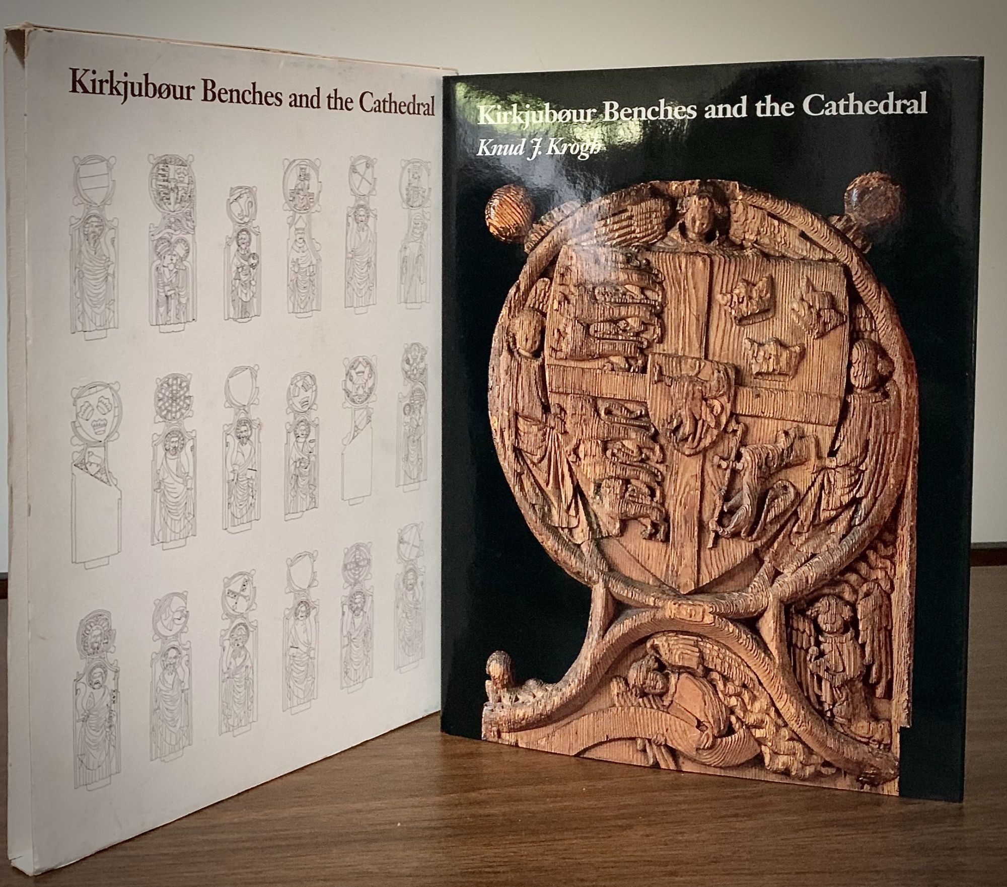 Torshavn: Emil Thomsen, 1988. First edition. Hardcover. Orig. decorated boards. Fine in fine dust wrapper in the original decorated slipcase. 134 pages. 32 x 24 cm. Color and black and white illustrations present richly decorated church furniture from the first half of the 15th century of the Faroe Islands. The motifs on the furniture are especially associated with the liturgical practice of the Faroes.