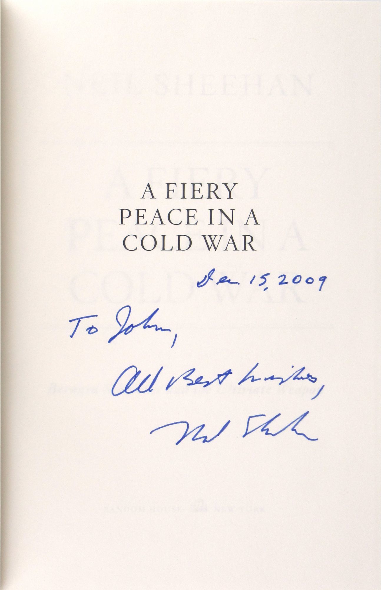 New York: Random House, 2009. Very Good +/Very Good +. New York: Random House, 2009. First Edition. Signed by Sheehan with brief inscription to half title. Octavo. 534 pages. Black embossed dust jacket over black paper-covered boards with gilt lettering to spine.