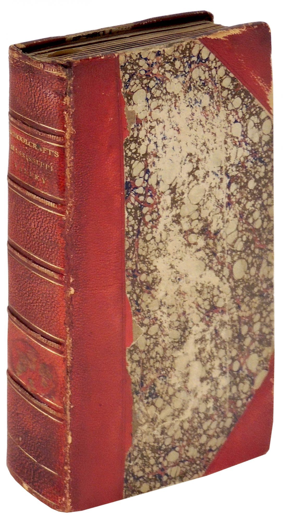 New York: Collins and Hannay, 1825. Hardcover. Very Good -. Hardcover. First Edition. Scarce. Henry Rowe Schoolcraft (1793 –1864) was an American geographer, geologist, and ethnologist, noted for his early studies of Native American cultures, as well as for his 1832 expedition to the source of the Mississippi River. In this earlier work, Schoolcraft describes a trip with General Cass, via the Wabash and Ohio Rivers to Illinois and Missouri, returning by the Mississippi and Illinois Rivers to Peoria and Chicago [Howes S193]. He writes extensively about the Native American tribes of the region. Bound in three quarter red leather with giilt titling and with marbled paper boards. Leather is scuffed, rubbed, and bumped. Marbled paper covers are scuffed as well. Indication that there was library label to spine and label removed from rear free endpaper. No other ex-library signs. Text pages are browned with scattered foxing, not affecting legibility. With two fold out maps, one of the area traveled and the other a color plate with a geological sketch of the lead mines. Both have a section separated along one of the folds. Both detached sections are laid in. There are also plates of Mt. Joliet, Fossil footprints, and Rock Fort. A prevous owner, Edward W. West stamped the title page and the back of the maps with his name. Not quite very good but a nice copy. Octavo. 459 pages. TRAVEL/051021.