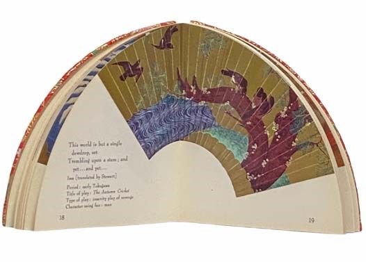Vermont: Charles E. Tuttle, 1981. Reprint. Small Hard Cover. Near Fine/No Jacket. 5x0x5. Pages lightly toned. 1981 Small Hard Cover. 41 pp. 5" x 4 3/4" fan shaped hardcover. Red background with yellow, green, white and gold stitching. "Noh Fans are an essential element element of Japanese theater and this collection of fans is a rare example of this fine Japanese art. The chief purpose of Painted Fans of Japan is to present for Westerners some of the gorgeous paintings found on fans used in the traditional Japanese Non drama.