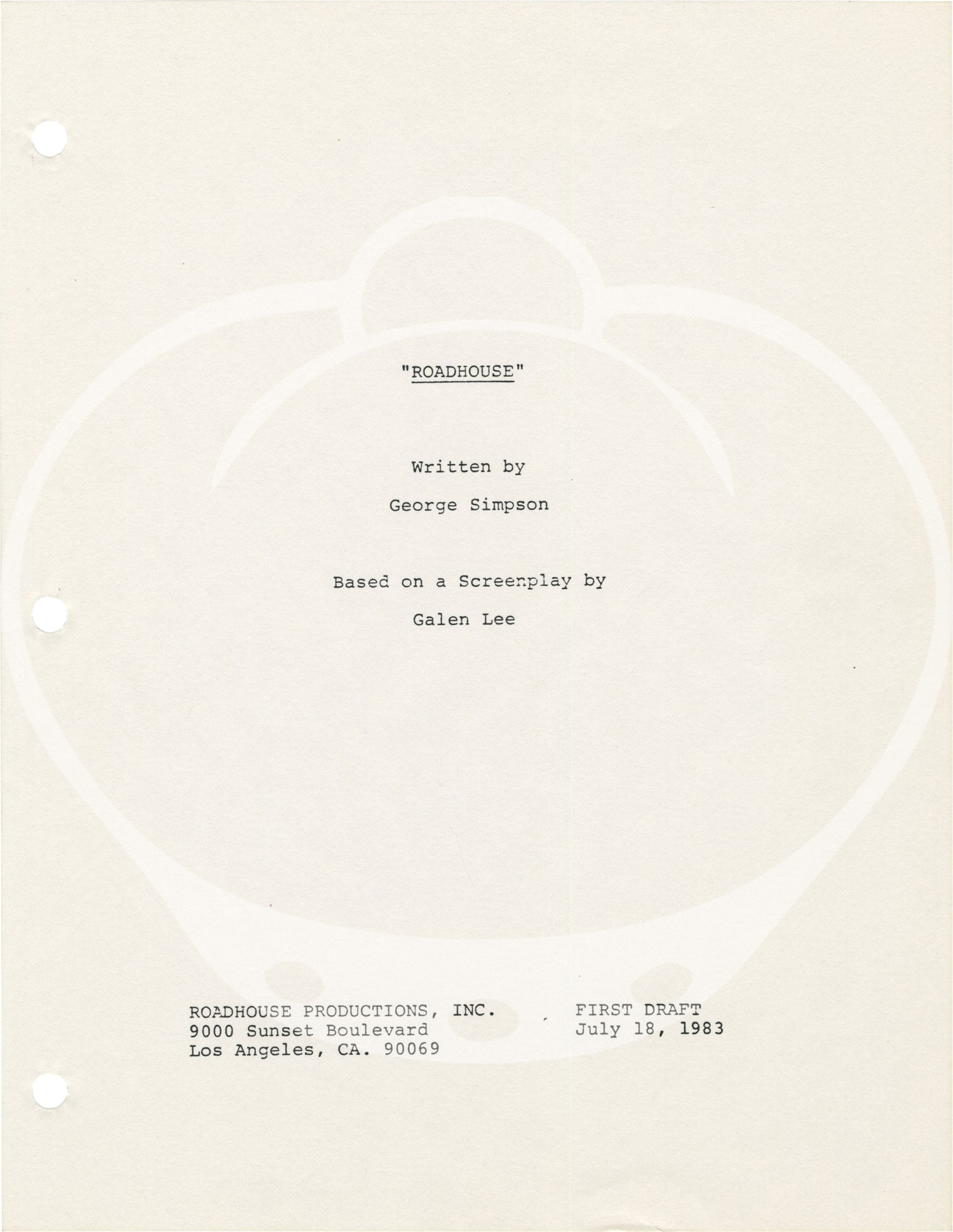 Los Angeles: Roadhouse Productions, Inc, 1983. First Draft script for the 1984 film, here under the working title "Roadhouse. "