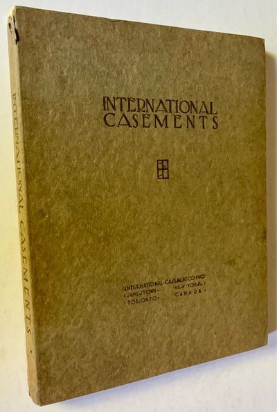 Jamestown, New York: International Casement Co, 1922.  Original wraps. Near Fine.  Elegant October 1922 catalogue (the 7th catalogue) issued by International Casement Company of Jamestwon, NY and featuring dozens of black-and-white examples (both line-drawn and photographed) of some of the most rococo and lavishly-designed casement doors and windows of the period. Also featurig examples of "International Transom Hardware", "Rod Gearing for International Transoms", "International Hardware for Wood Casement Sash", "Leaded Glass and Glazing", "Photographs and Measured Drawings of American Residences Equipped with International Casements", "Photographs and Measured Drawings of Churches, College Buildings and Schools Equipped with International Casements", "Steel Ceiling Lights for Banks and Public Buildings", etc. Solid and very well-preserved. Mild wear along the spine crown, decorative former owner bookplate at the front pastedown, otherwise clean as could be. Quarto, lovely, crisp black-and-white photography throughout. The catalogue was designed and arranged by Albert W. Ford (Architect) and printed by Magill-Weinshimer Company, Chicago.